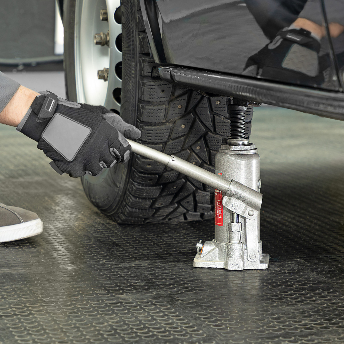 • Безопасность — предохранительный клапан защищает домкрат от перегрузок, не позволяя поднимать автомобиль массой более 5000 кг.