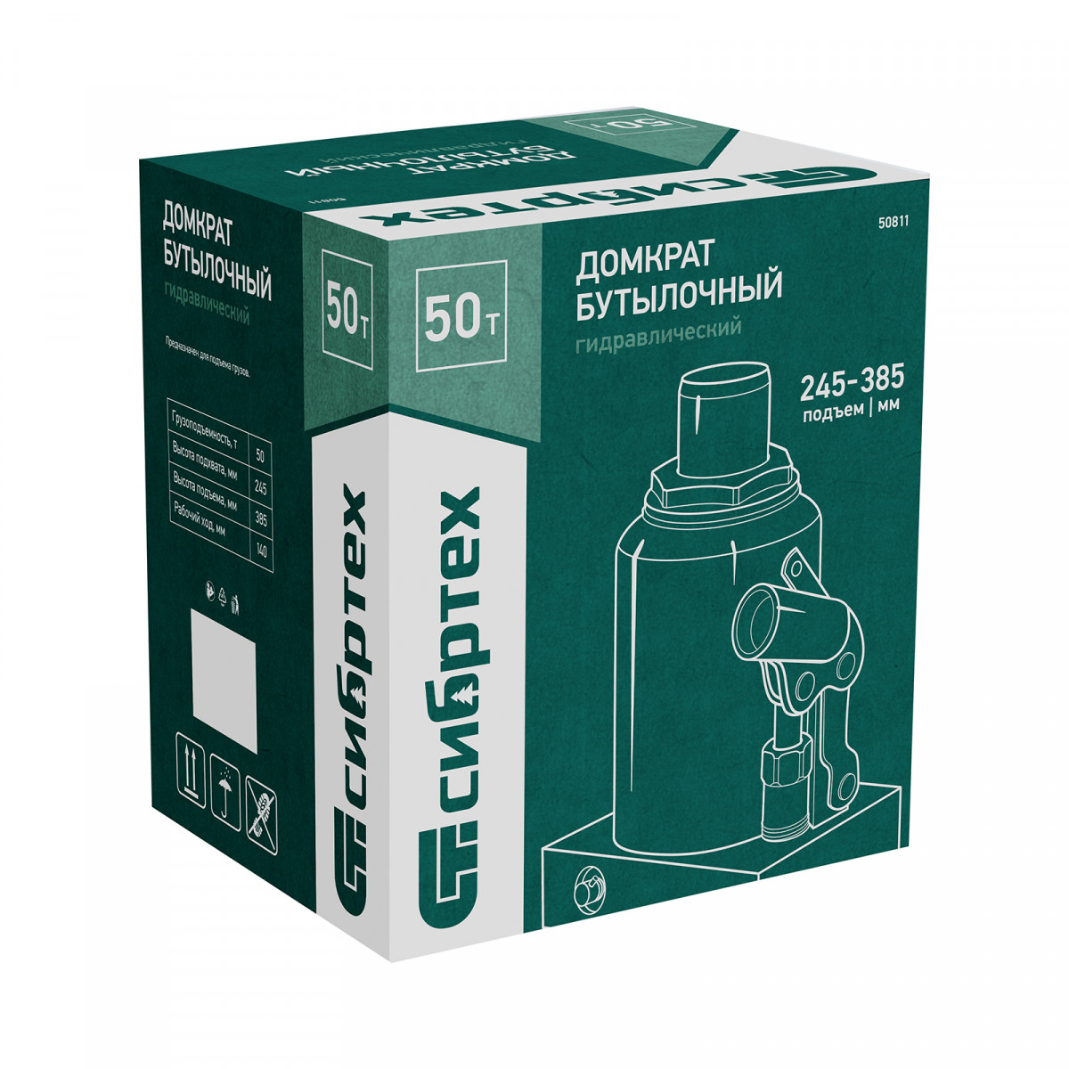 Домкрат гидравлический бутылочный, 50 т, 245-385 мм Сибртех