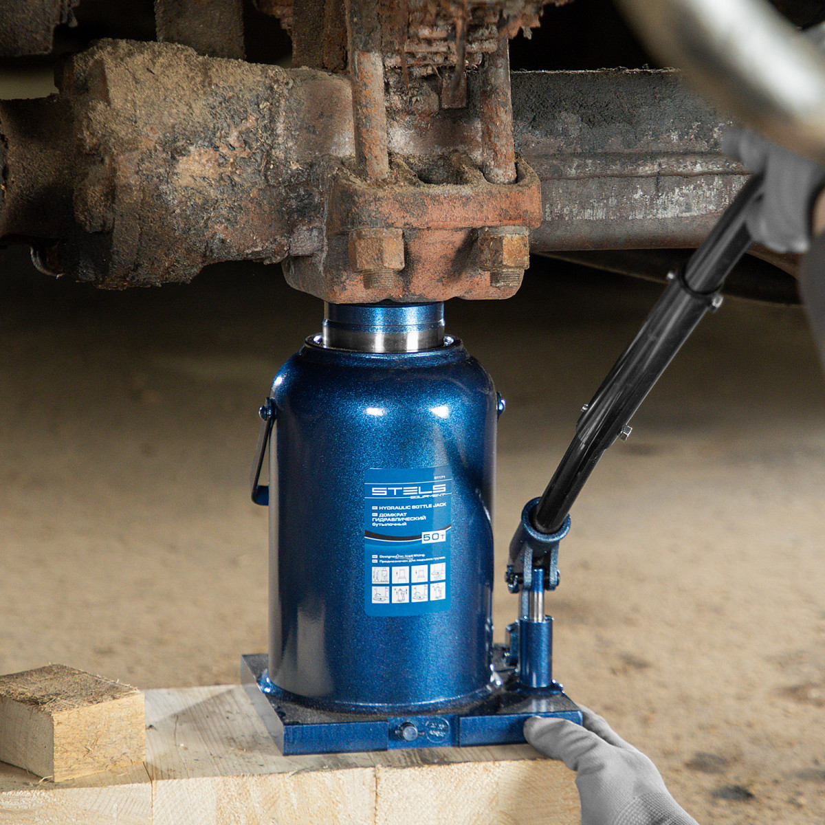 - Безопасная эксплуатация — благодаря предохранительному клапану домкрат не поднимает грузы тяжелее 50 т.