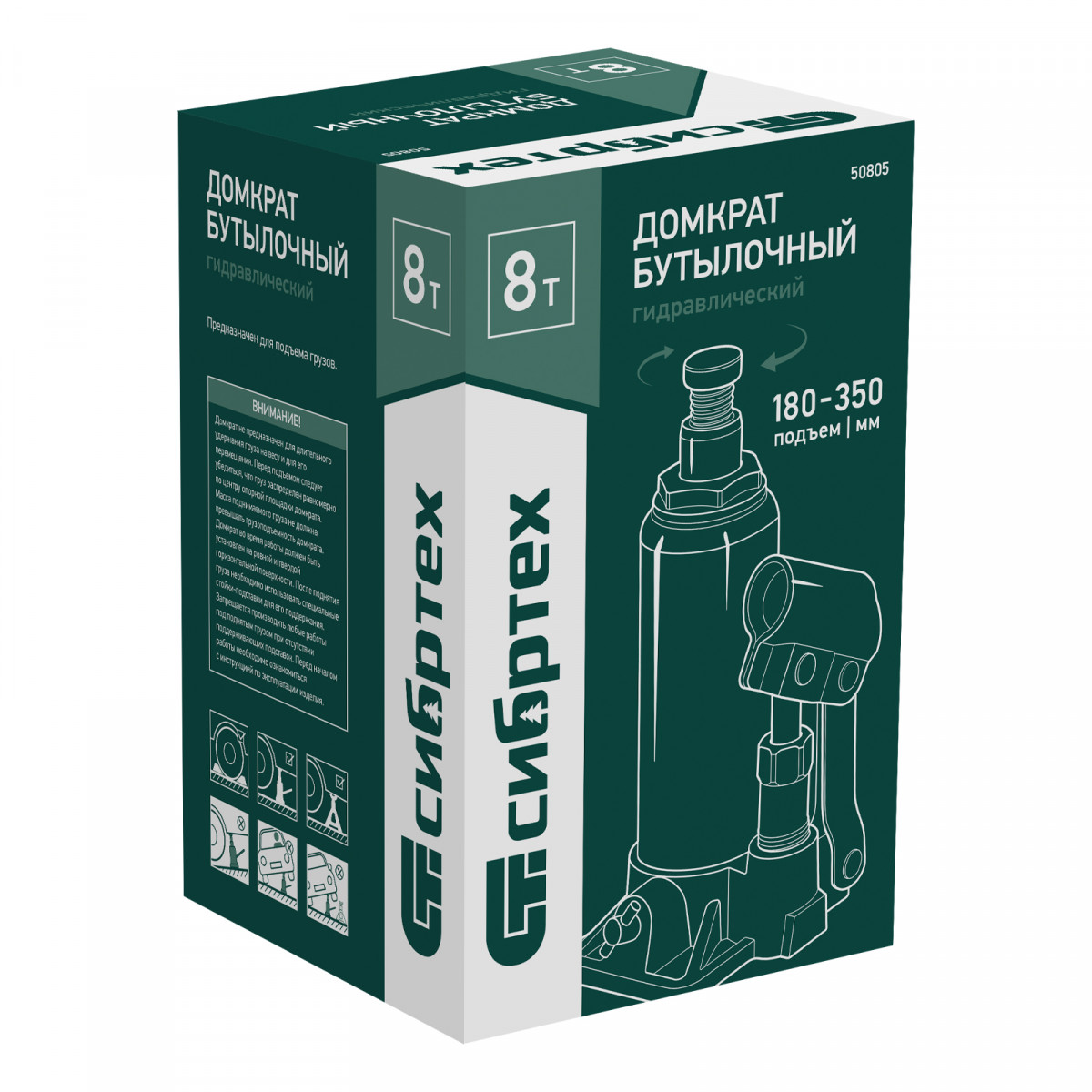 Домкрат гидравлический бутылочный, 8 т, 180-350 мм Сибртех