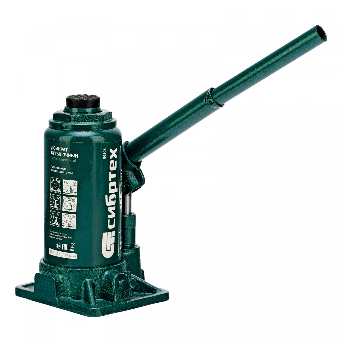Домкрат гидравлический бутылочный Сибртех 50805 предназначен для подъема грузов массой до 8 т на высоту от 180 до 350 мм. Не требует больших усилий от пользователя и значительно облегчает рабочий процесс. Домкрат будет полезен при проведении техобслуживания машины в автосервисе или гараже.