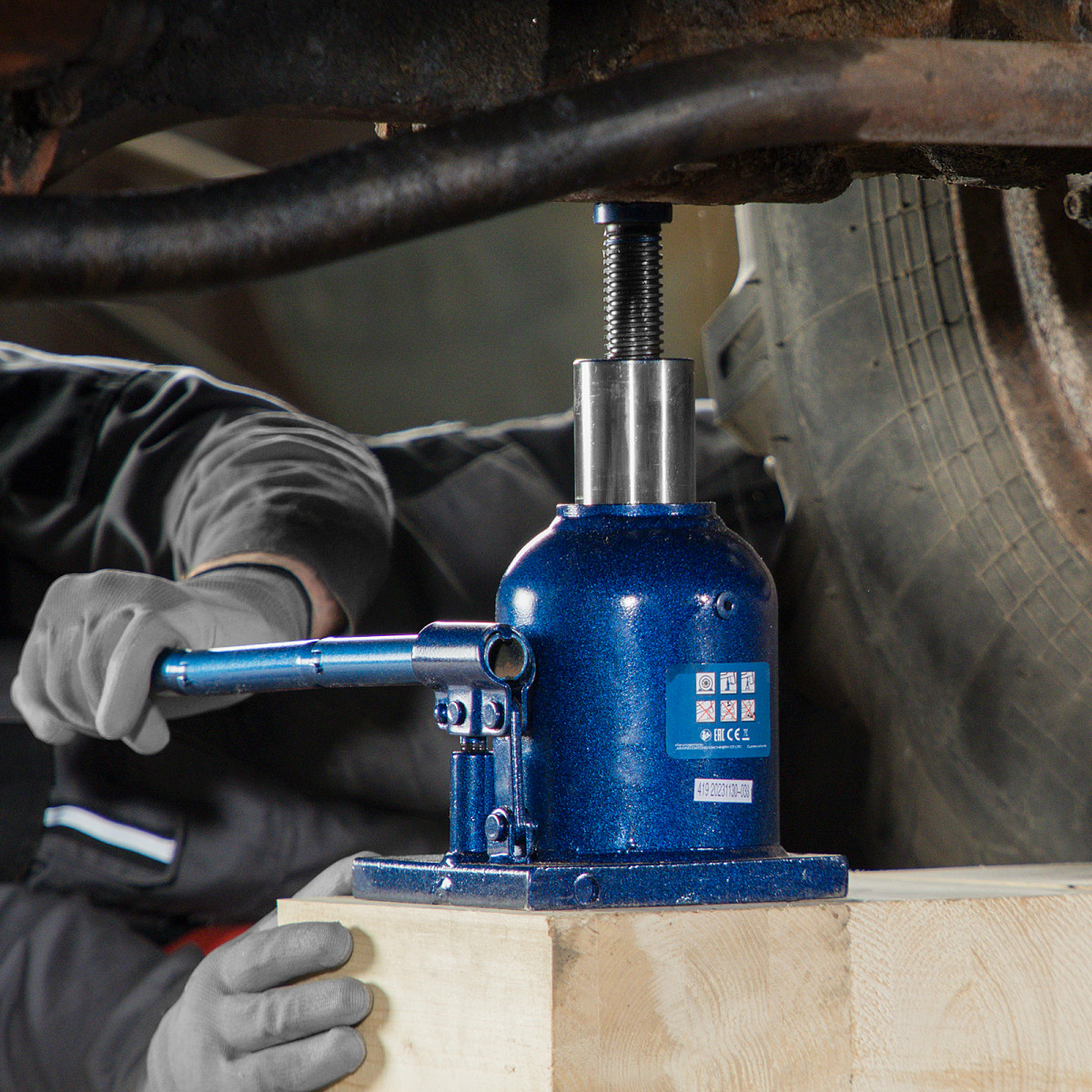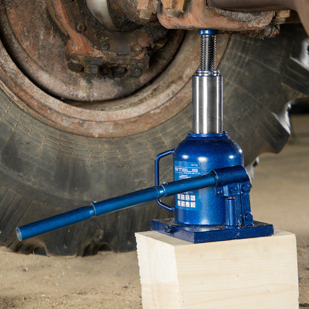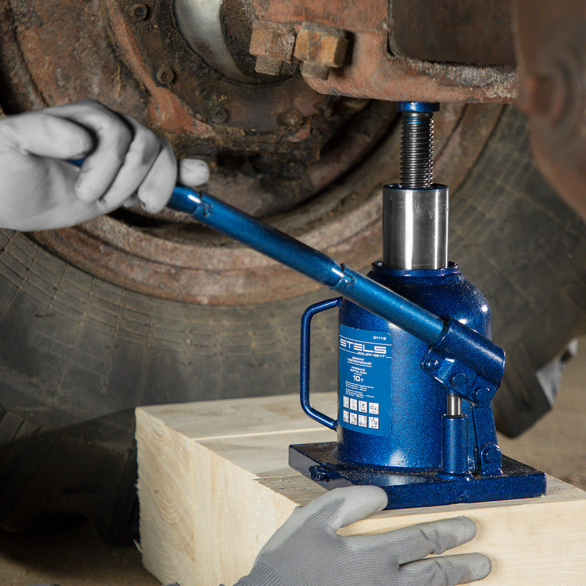 Гидравлический бутылочный телескопический домкрат Stels 51119 используется для поднятия грузов весом до 10 т с на высоту 170-430 мм. Не требует больших усилий и оптимален для автомобилей с большим клиренсом. Домкрат можно использовать в гараже для самостоятельного ремонта машины или в автосервисе для решения профессиональных задач.