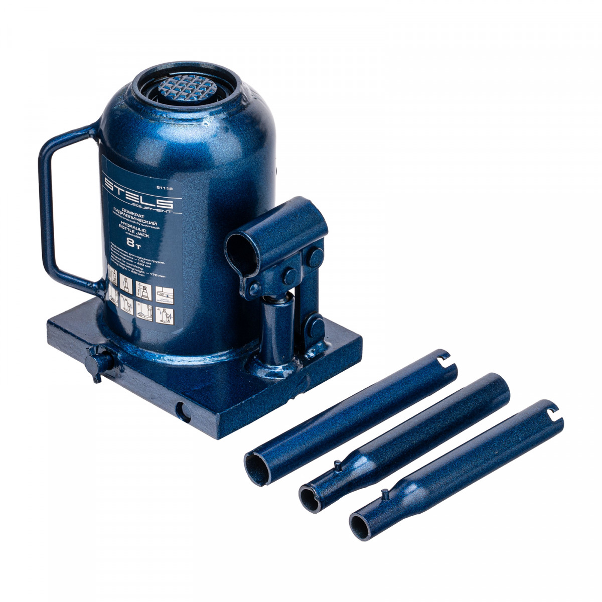 Гидравлический бутылочный телескопический домкрат Stels 51118 используется для поднятия грузов весом до 8 т с на высоту 170-430 мм. Не требует больших усилий и оптимален для автомобилей с большим клиренсом. Домкрат можно использовать в гараже для самостоятельного ремонта машины или в автосервисе для решения профессиональных задач.