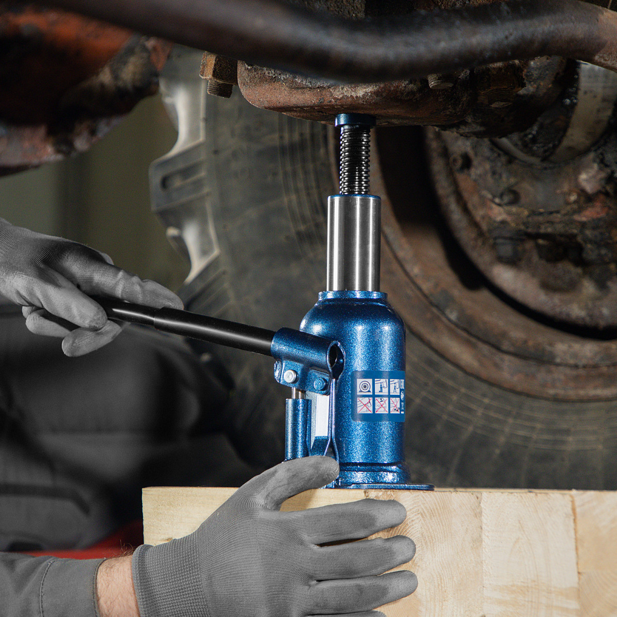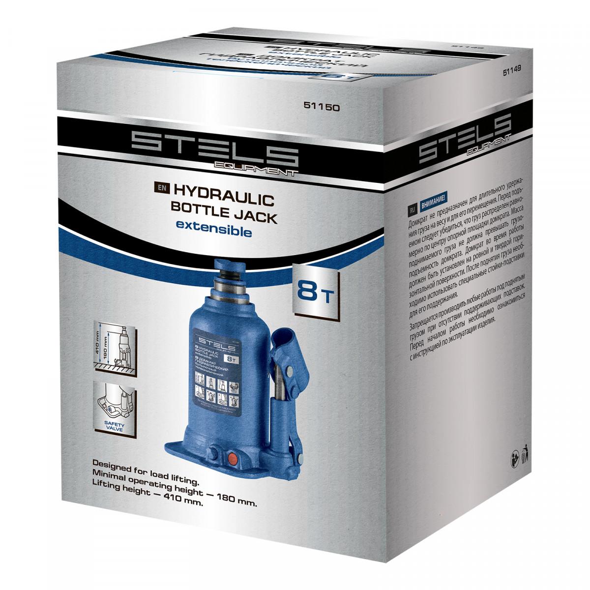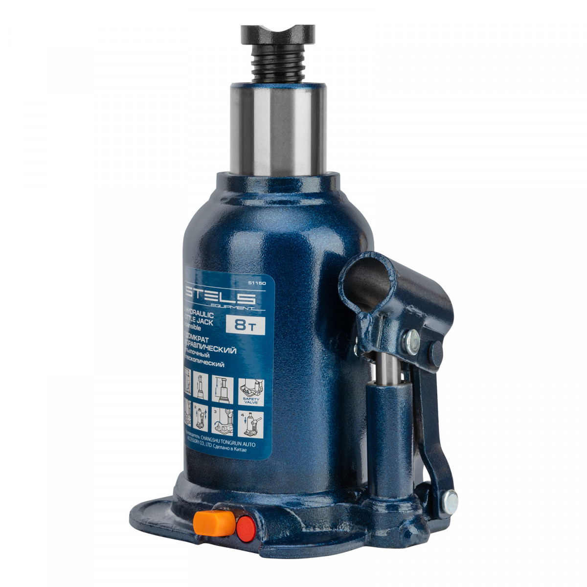 Домкрат гидравлический бутылочный Stels 51150, телескопический, используется для поднятия грузов весом до 8 т с на высоту 180-410 мм. Не требует больших усилий и оптимален для автомобилей с большим клиренсом. Домкрат можно использовать в гараже для самостоятельного ремонта машины или в автосервисе для решения профессиональных задач.
