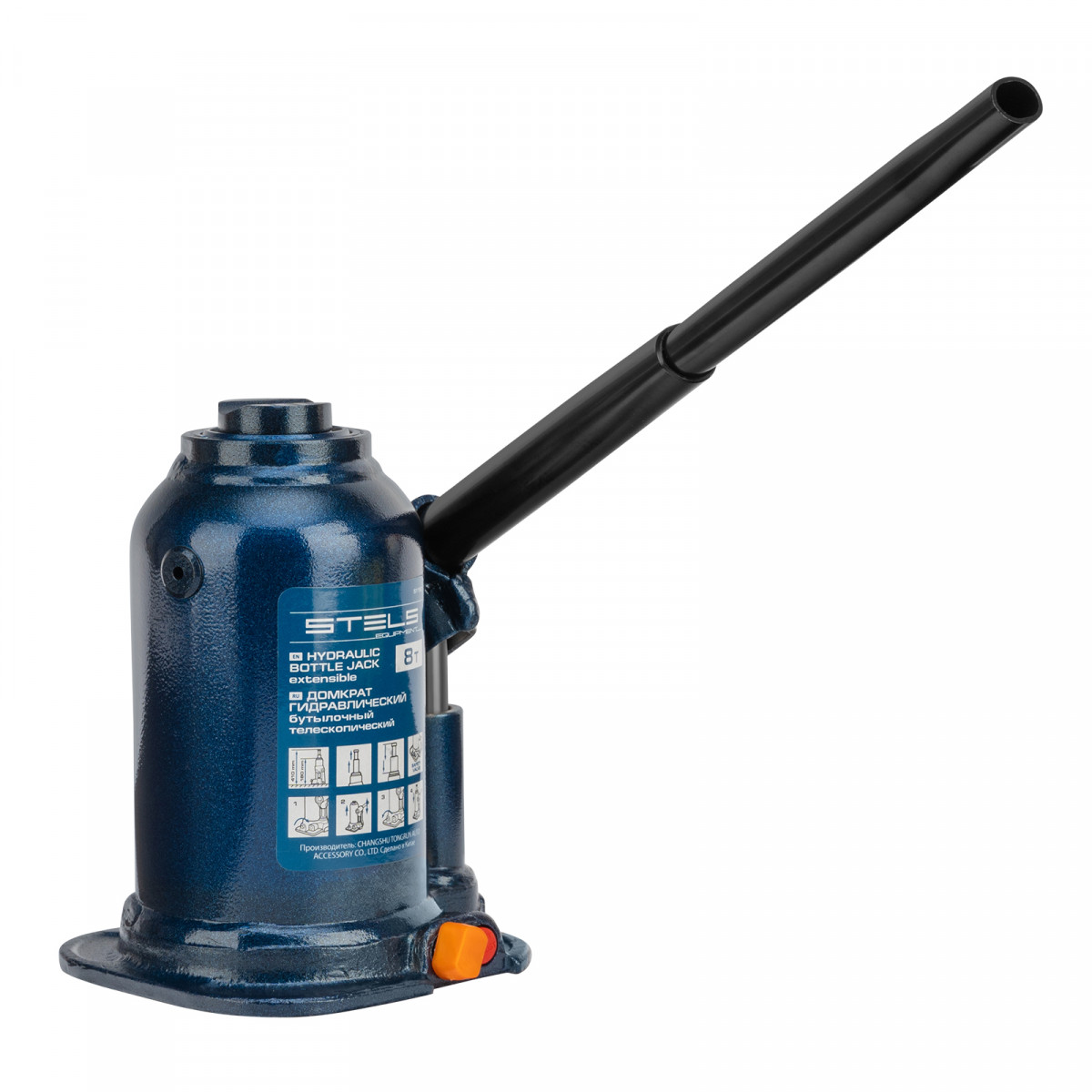 Домкрат гидравлический бутылочный телескопический, 8 т, подъем 180-410 мм Stels