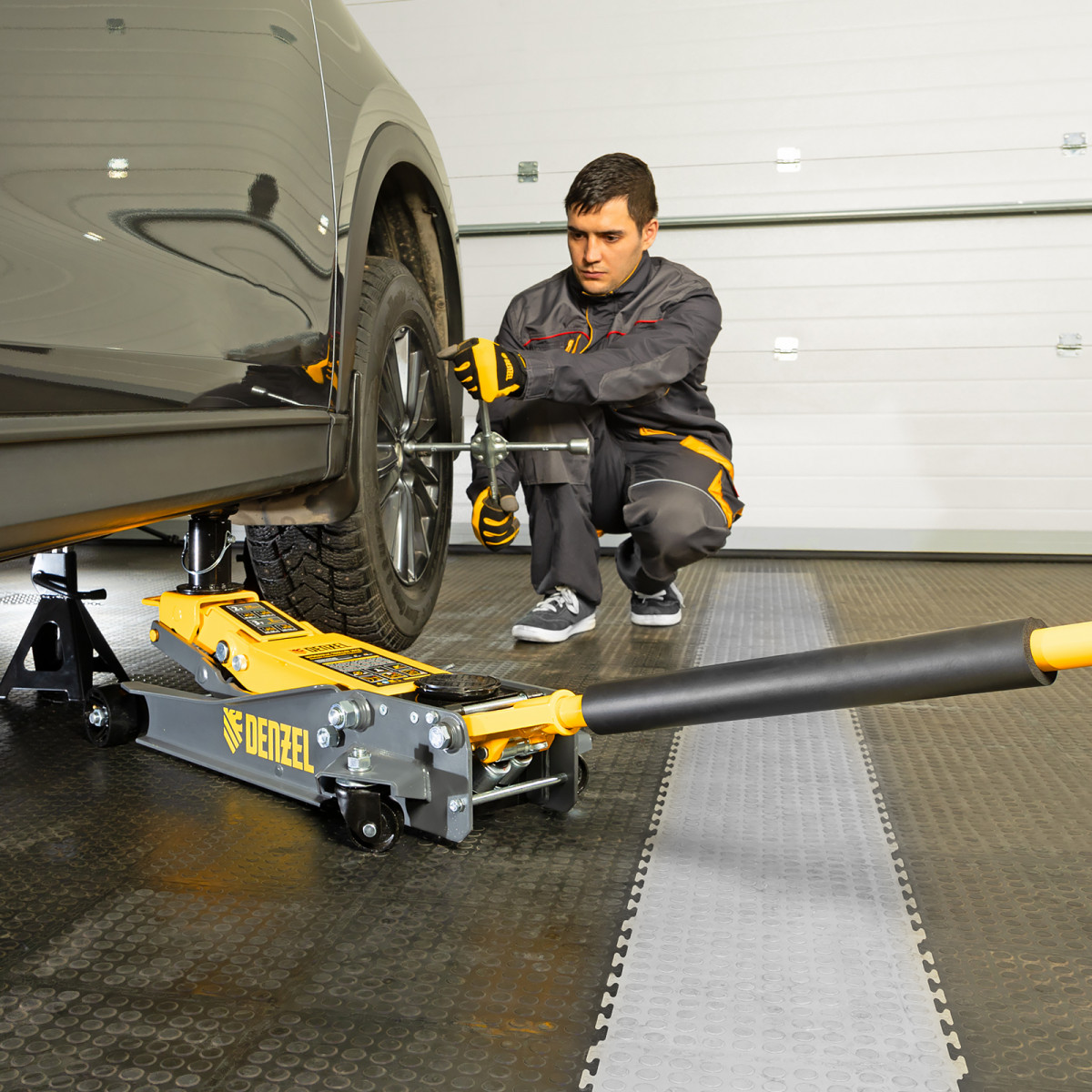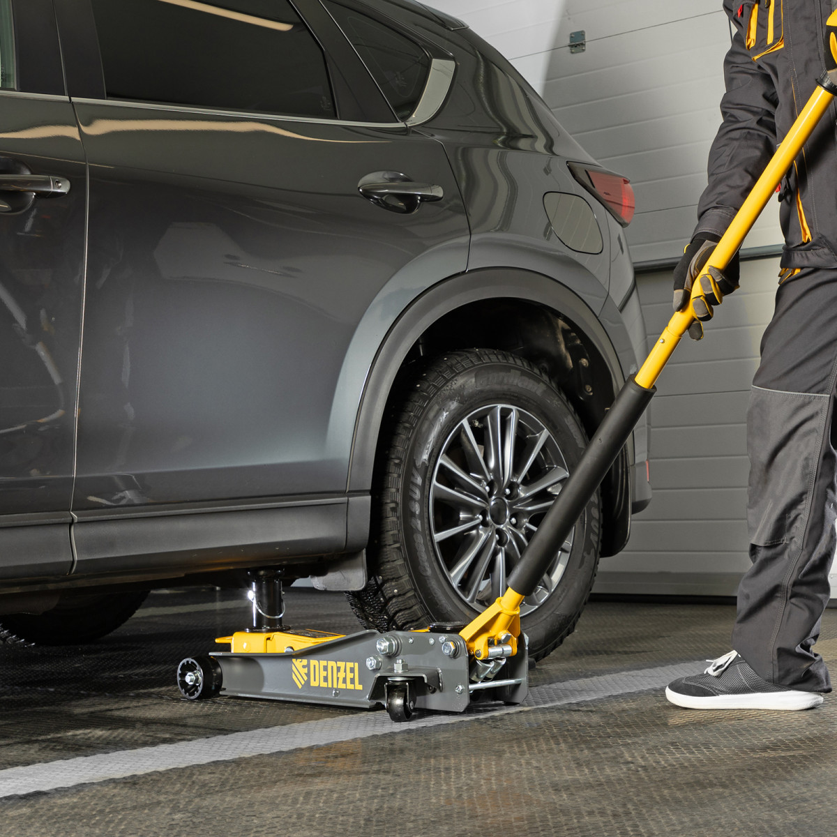 Профессиональный подкатной гидравлический домкрат Denzel 51270 с низким подхватом используется для быстрого подъема на высоту 98-770 мм всех типов автомобилей с любым клиренсом и массой до 2-3 т, в том числе SUV (внедорожников). Регулируемая проставка позволяет менять высоту подхвата и подъема, а также максимальную грузоподъемность. Высота подъема до 770 мм позволяет без труда обслуживать автомобили с высоким клиренсом, такие как рамные внедорожники, например, Dodge RAM, Ford Raptor и т.д.