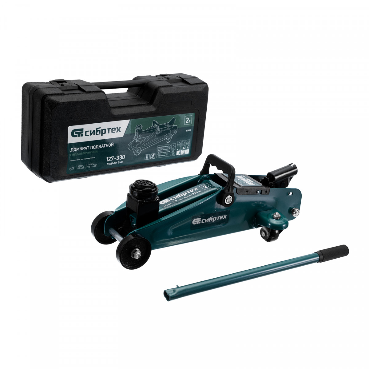 Домкрат гидравлический подкатной, 2 т, 127-330 мм, в пласт. кейсе Сибртех