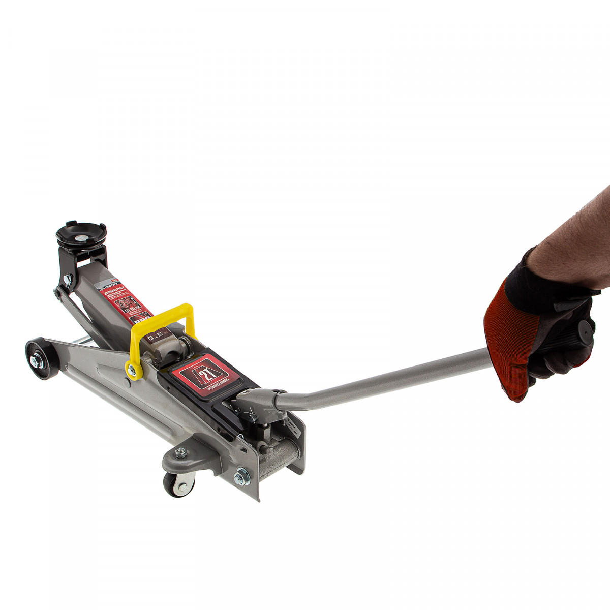 - Мобильность — благодаря транспортировочной ручке домкрат удобно перемещать по рабочей зоне.