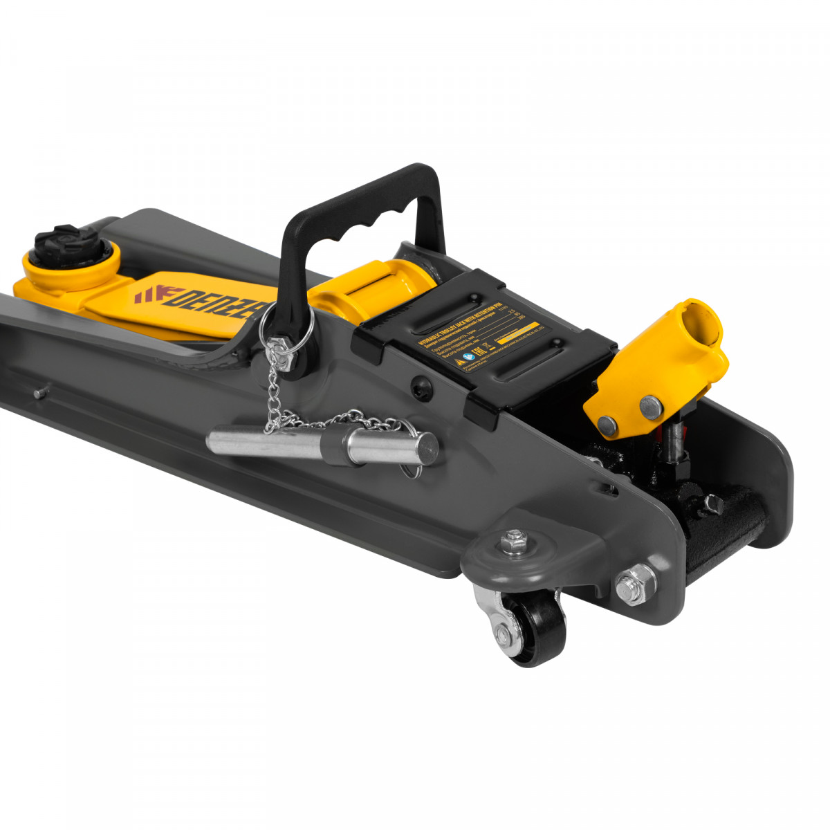 Домкрат гидравлический подкатной с фиксатором, 2,5 т, 85-385 мм, в пласт. кейсе Denzel