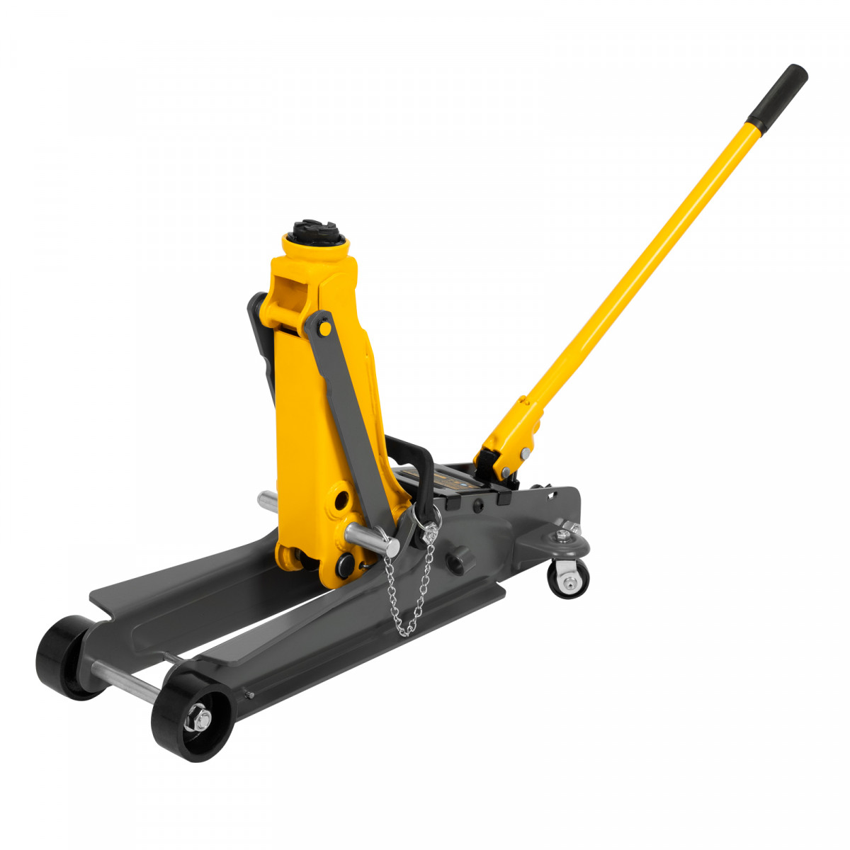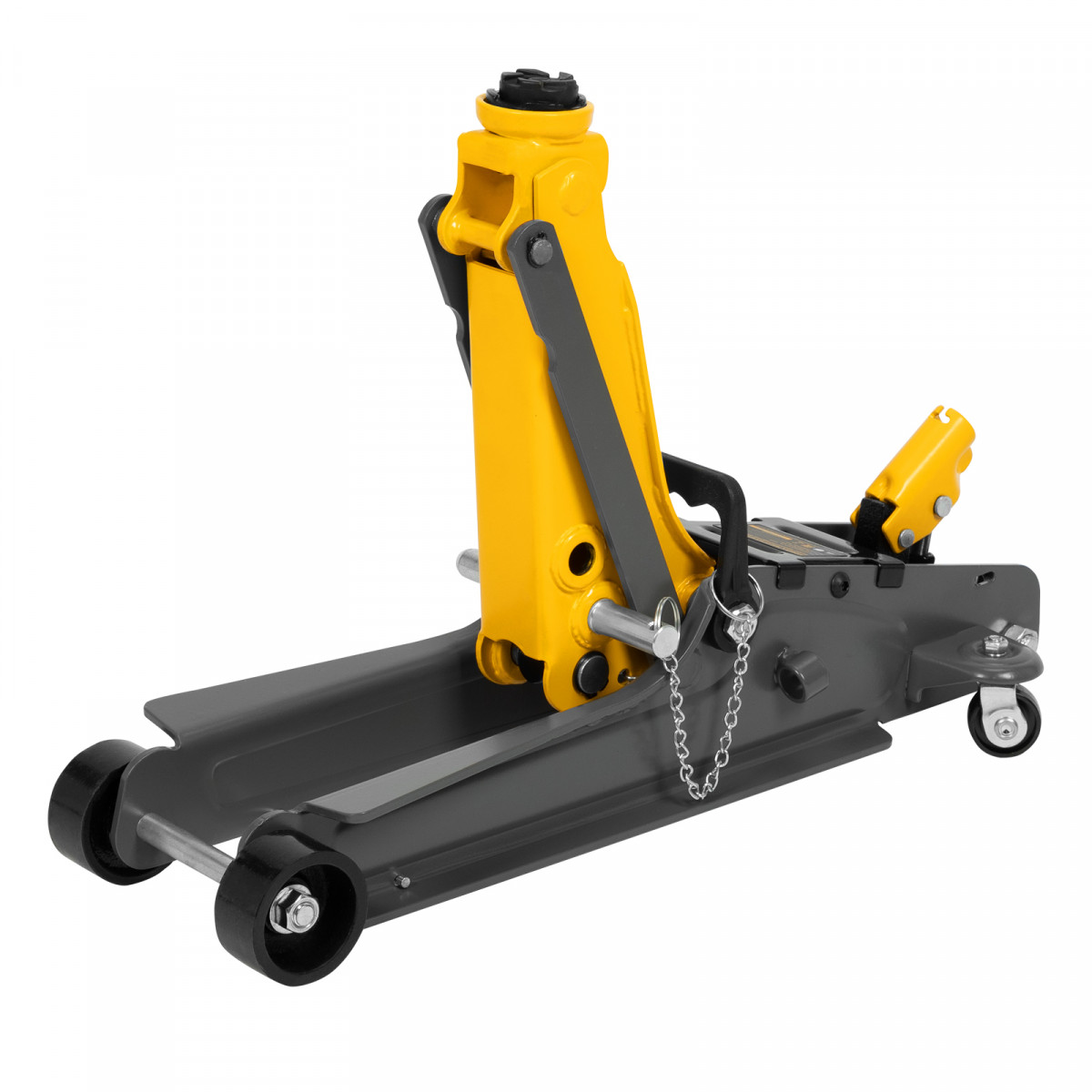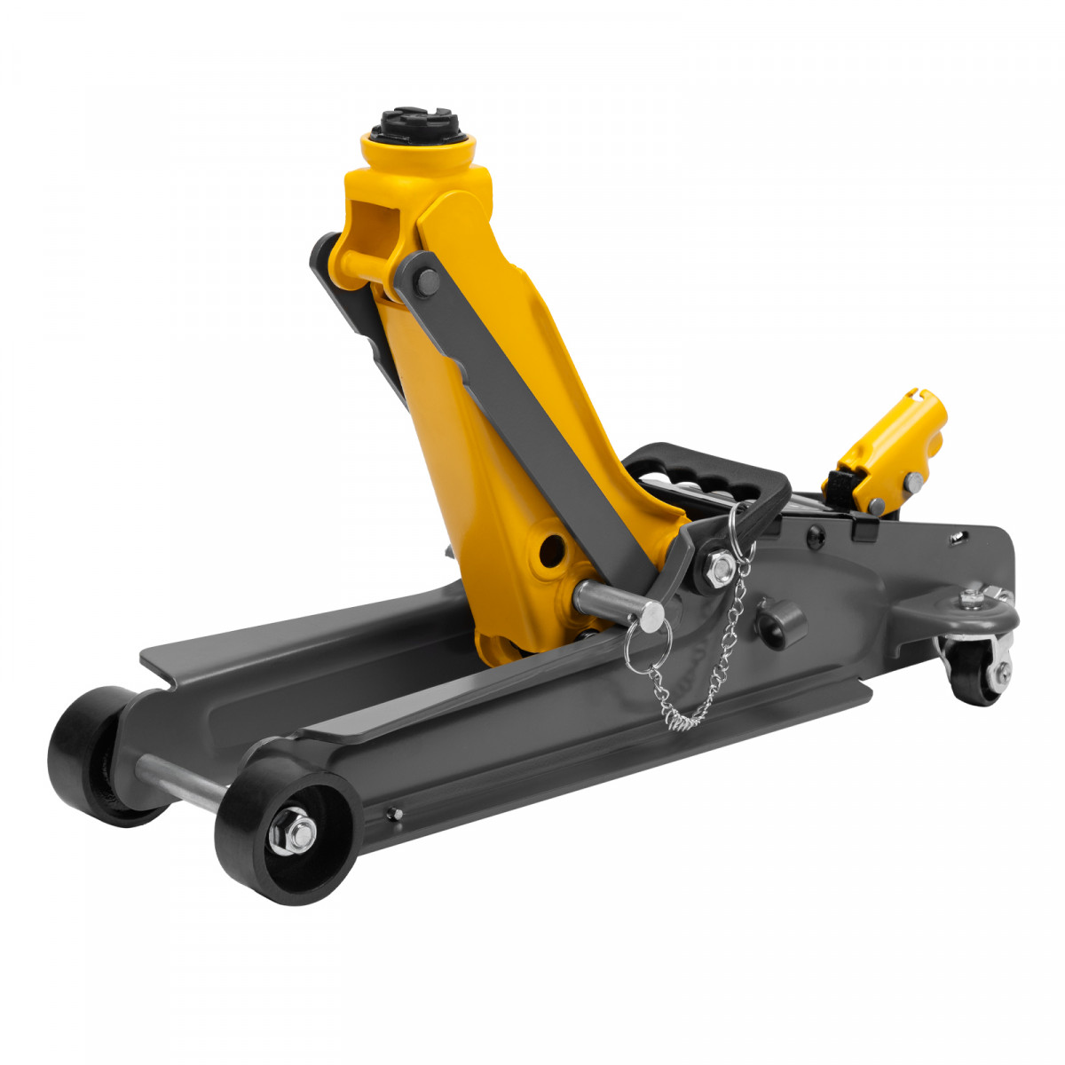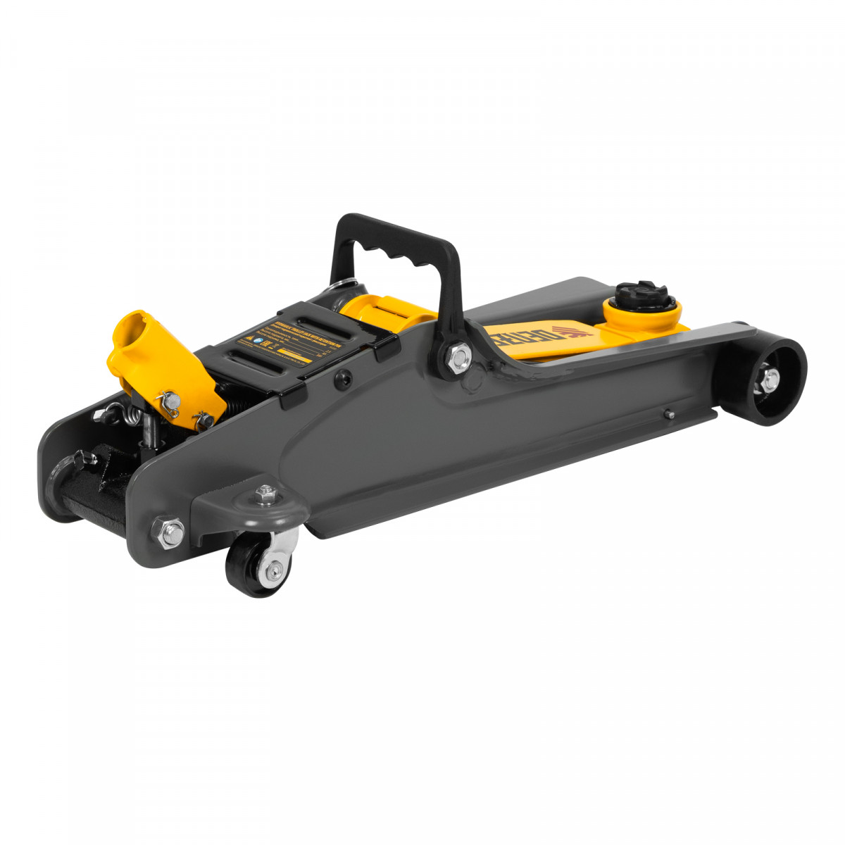 Гидравлический подкатной домкрат Denzel 51233 с фиксатором, поставляющийся в кейсе, имеет высоту подхвата 85 мм и предназначен для плавного подъема грузов массой до 2,5 т на высоту до 385 мм. Страховочный штифт позволяет фиксировать подъемный рычаг на высоте 290 и 355 мм для безопасной работы. Домкрат пригодится владельцам легковых автомобилей с низким и стандартным клиренсом.
