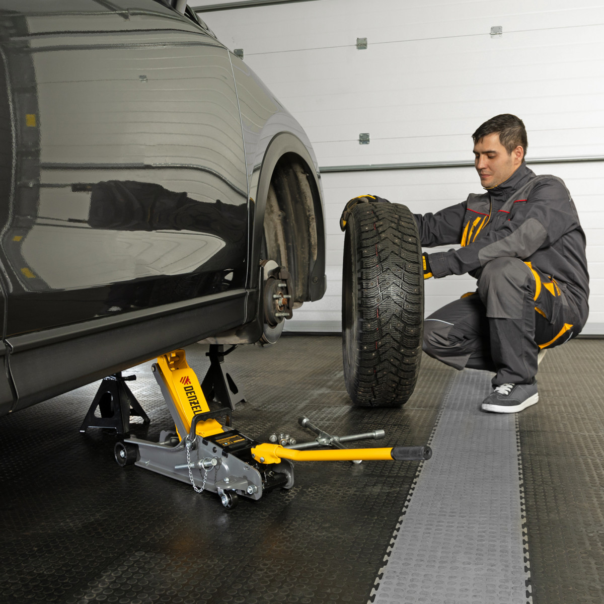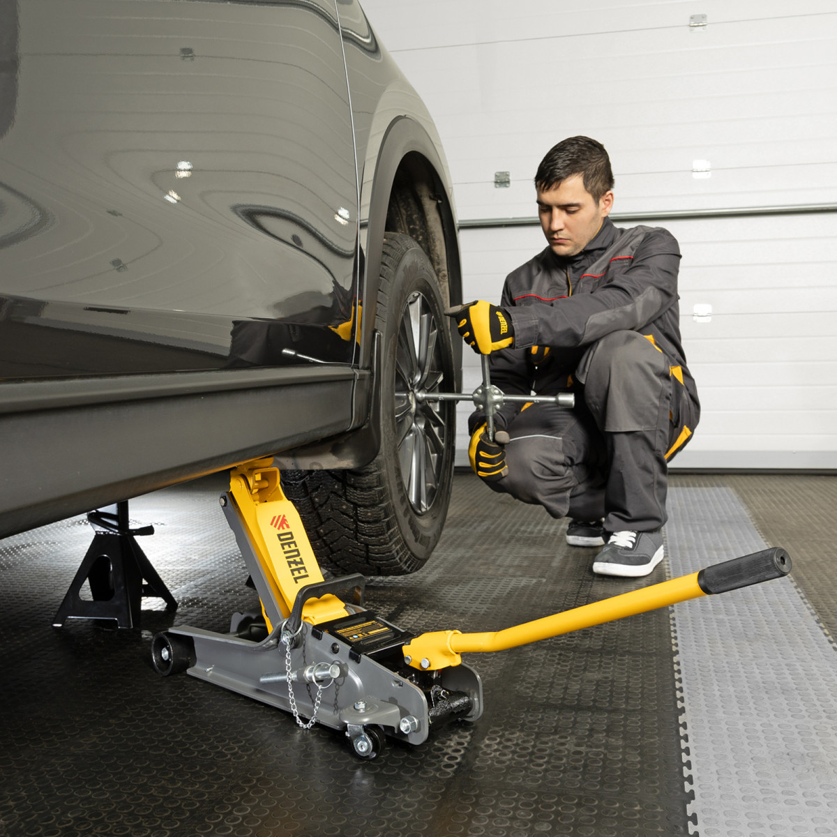 - Аккуратная работа — резиновая опора защищает днище автомобиля от нежелательных повреждений.