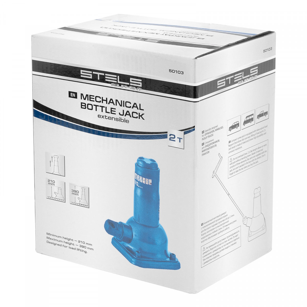 Домкрат механический бутылочный, 2 т, h подъема 210–390 мм, 2 части (домкрат, ручка) Stels