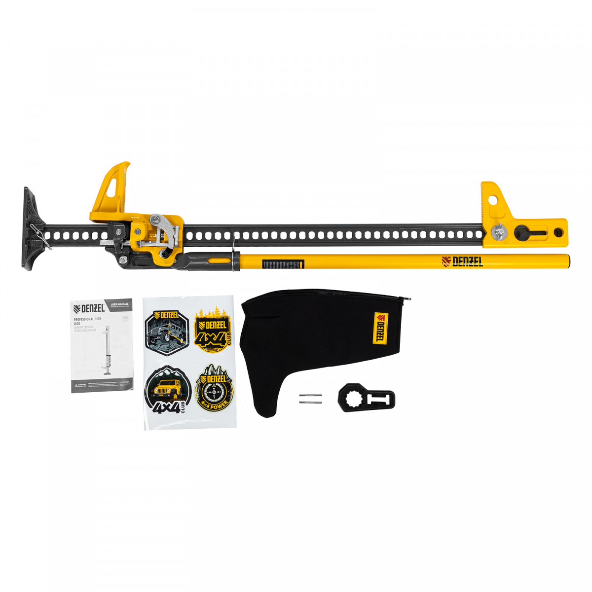 Домкрат реечный - 1 штФиксатор рукоятки домкрата - 1 штНеопреновый чехол - 1 штПоперечные штифты - 2 шт