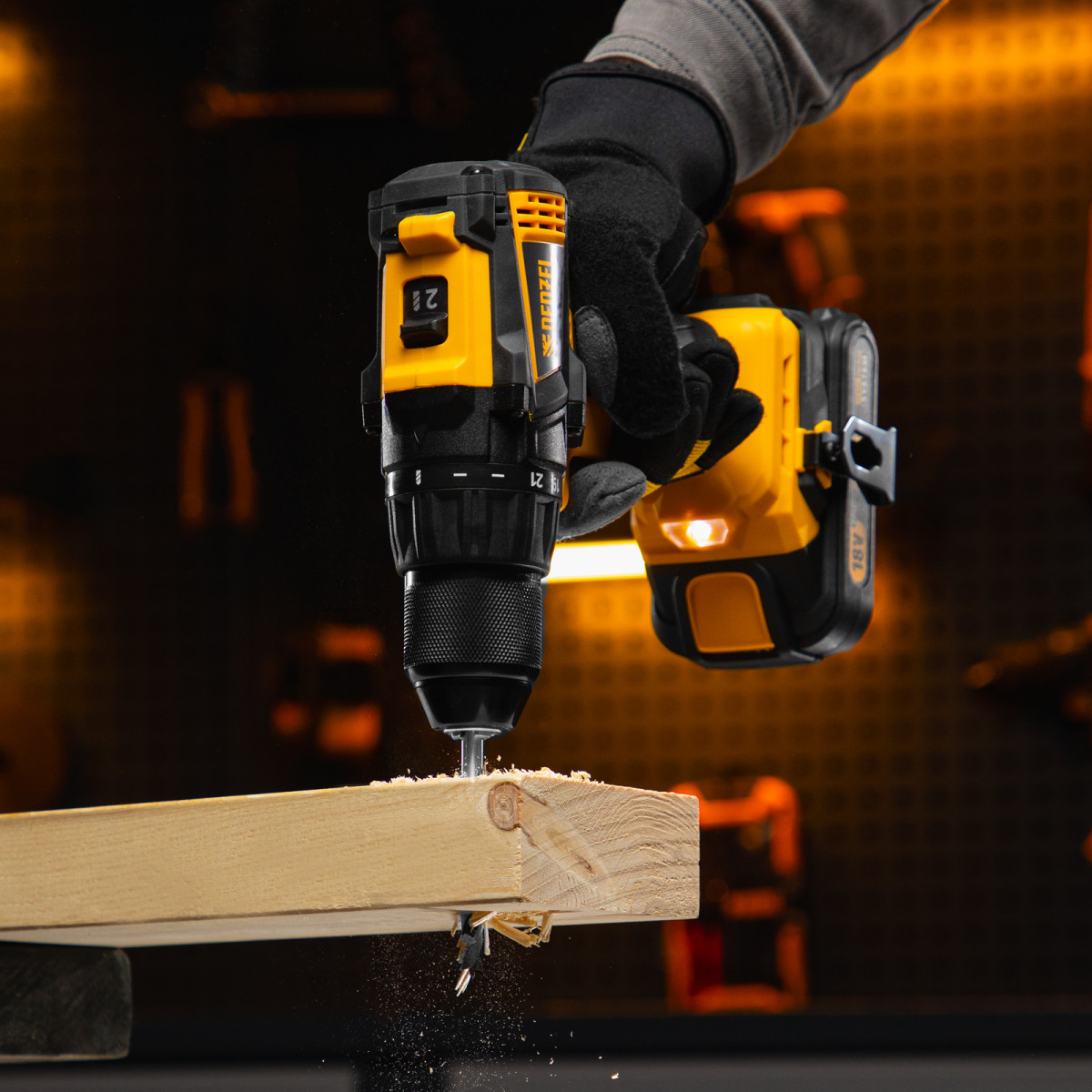 Мощный бесщеточный двигатель обеспечивает 20-30% более высокий КПД по сравнению с коллекторными дрелями.
