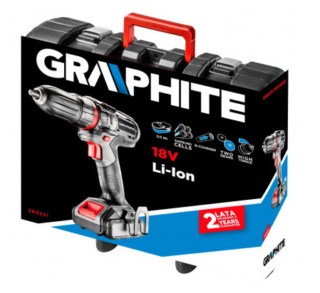 Дрель-шуруповерт аккумуляторная GRAPHITE 18V Li (кейс)