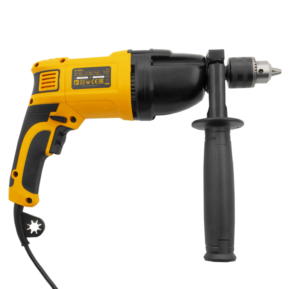 Дрель ударная ID-1050-2, 1050 Вт, 0-3000/0-1100 об/мин, 0-48000/0-17600 уд/мин, 2 скорости Denzel