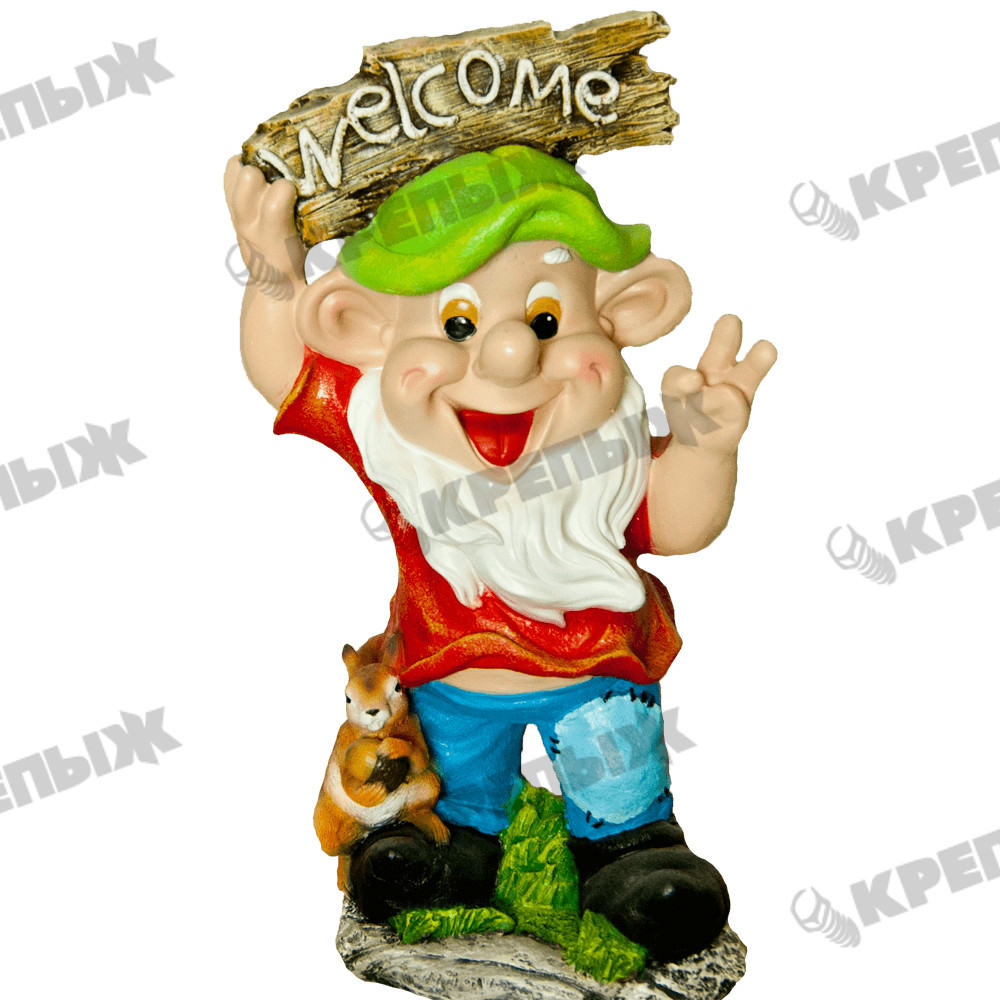 Фигура садовая Гном с табличкой Welcom и белкой