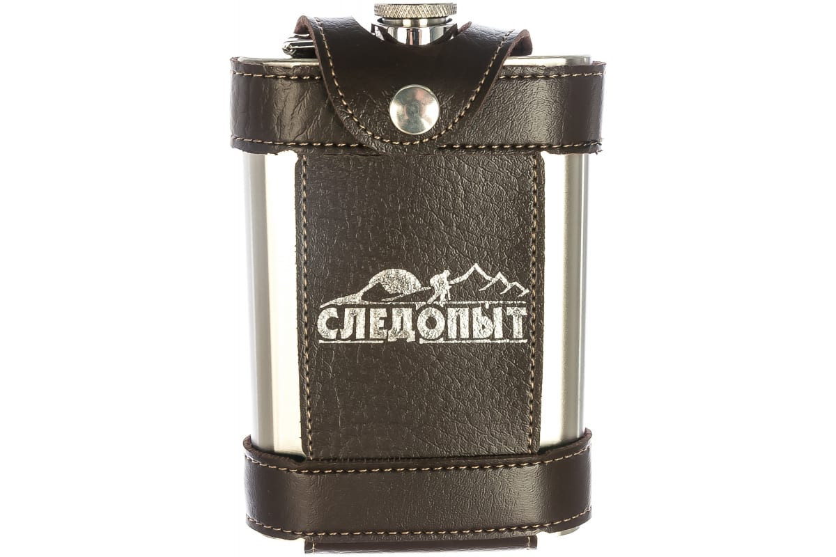 Фляжка в кожаном чехле с тиснением Следопыт Flage 270 мл, коричневая PF-BD-F15 - долговечная и практичная модель для использования в походах.