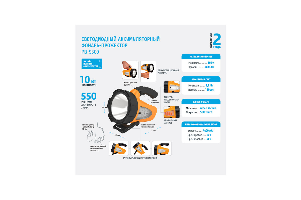 Фонарь-прожектор аккумуляторный ФОТОН LED РВ-9500