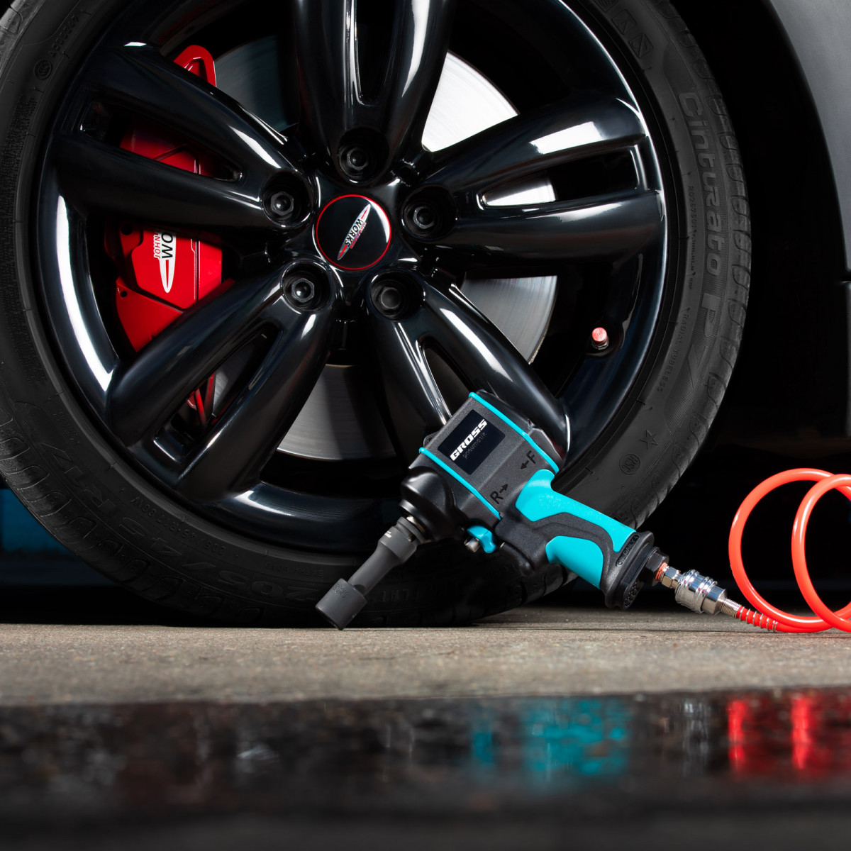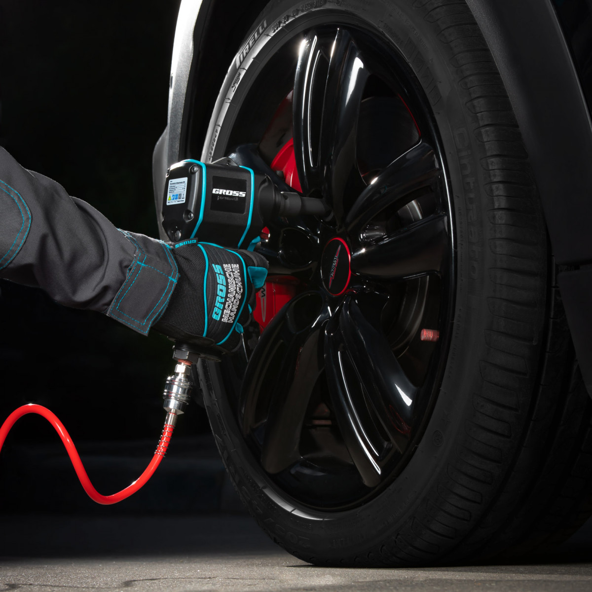 Пневматический ударный гайковерт Gross G985 57440 из композитного материала, с присоединительным квадратом 1/2″, максимальным крутящим моментом 610 Нм и частотой вращения шпинделя 9000 об/мин, оборудован двойным молотковым ударным механизмом Twin Hammer и предназначен для закручивания и откручивания гаек и болтов. Легко затягивает высоконагруженные соединения и справляется с заржавевшим крепежом. Расход воздуха составляет всего 120-480 л/мин, поэтому гайковерт может работать с маломощными компрессорами. Инструмент используется как для бытовых работ, так и для решения профессиональных задач в сборочном цеху или в автосервисе.