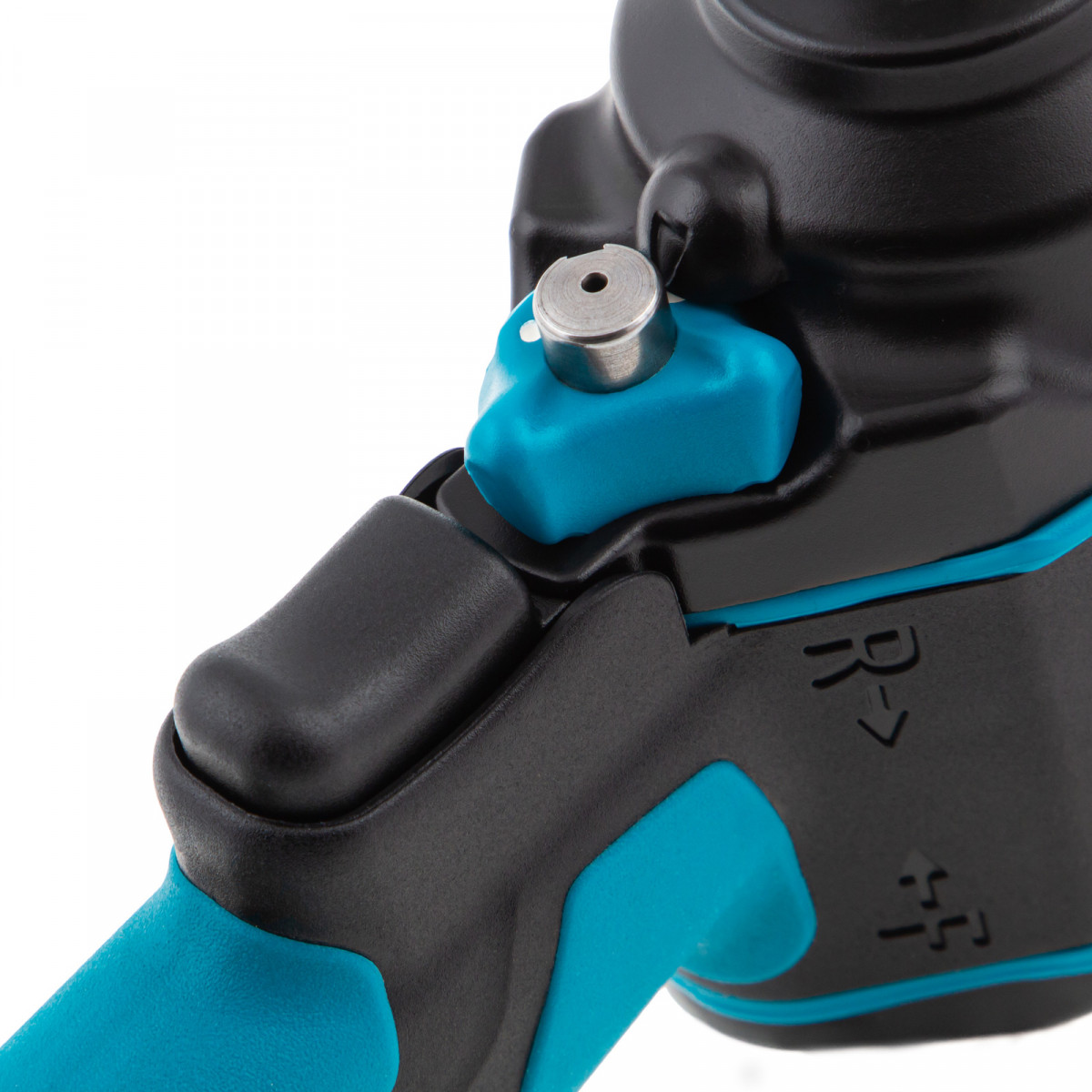 • Комфортность использования — выходное отверстие находится в нижней части рукоятки, поэтому отработанный воздух не попадает на мастера.