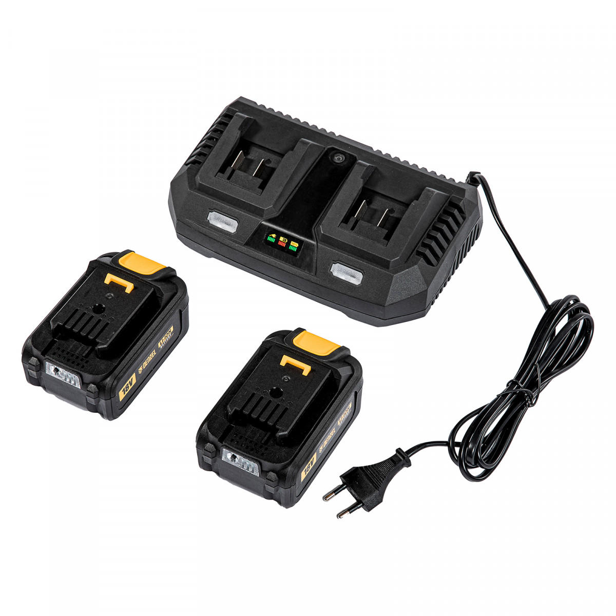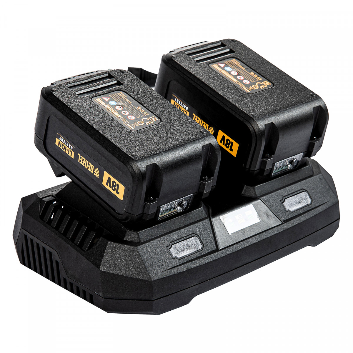 • Универсальность — аккумуляторные батареи Li-ion емкостью 4 Ач совместимы с любым инструментом из модельного ряда единой платформы Denzel Battery System 18V.