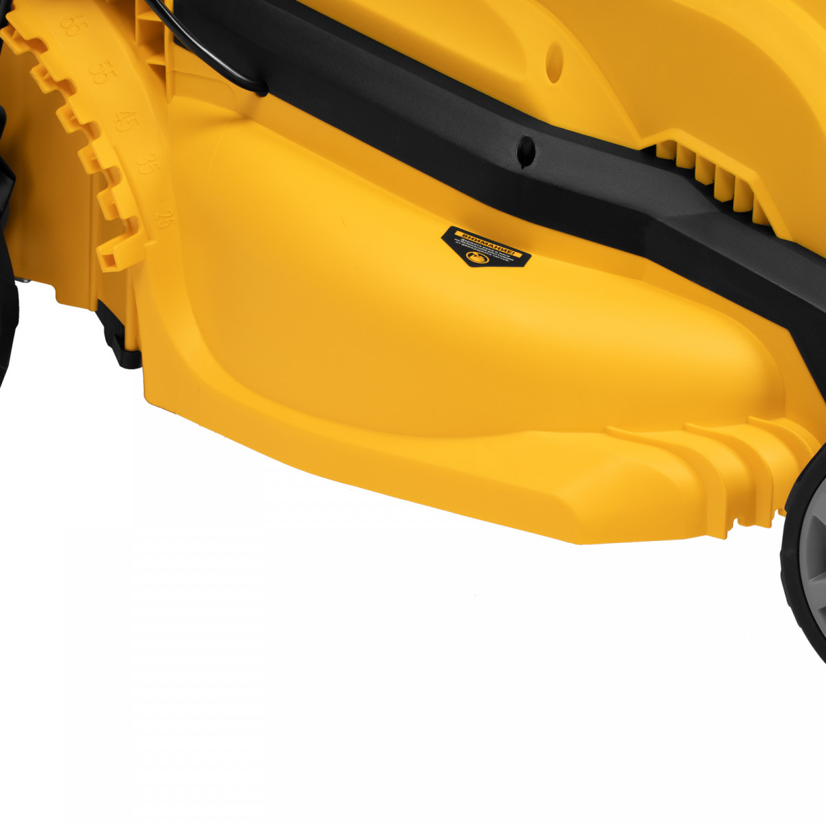 - Удобное использование — высота скашивания регулируется при помощи одного рычага.