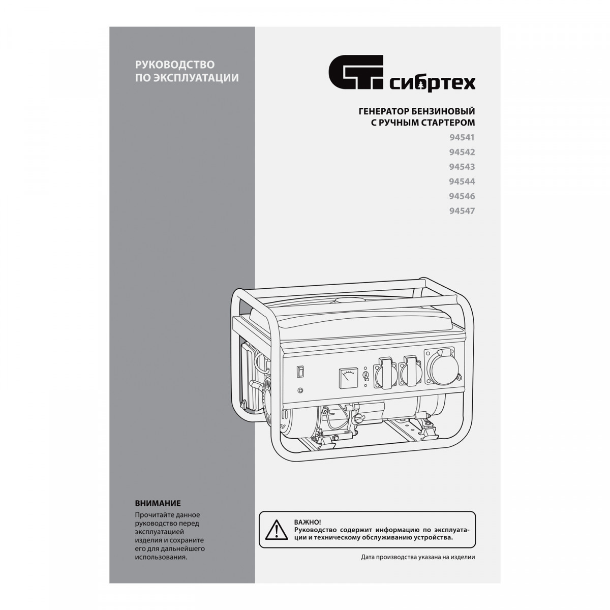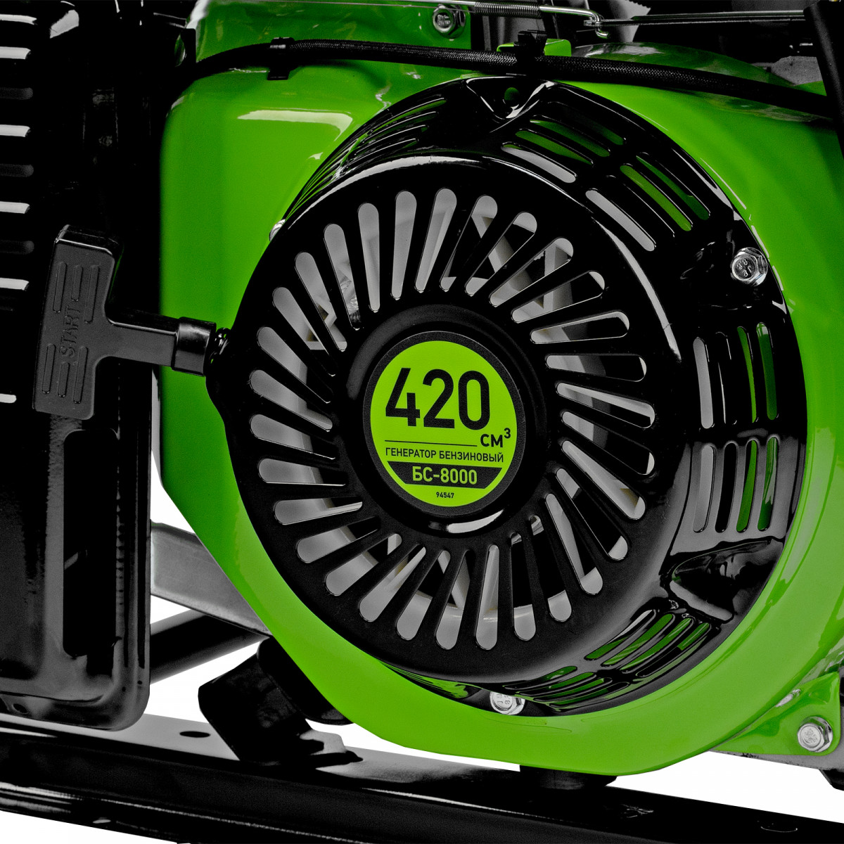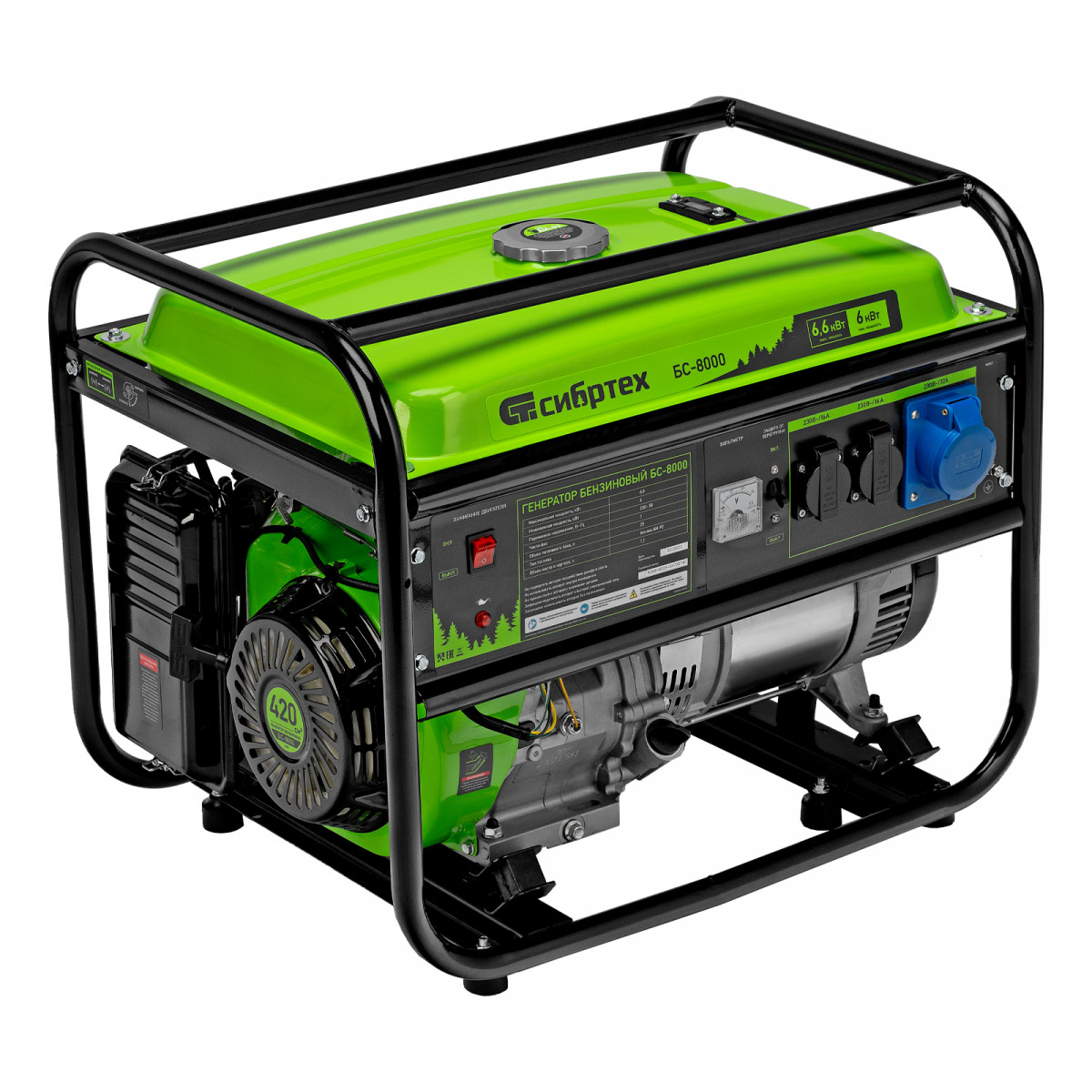 Генератор бензиновый БС-8000, 6,6 кВт, 230В, четырехтактный, 25 л, ручной стартер Сибртех