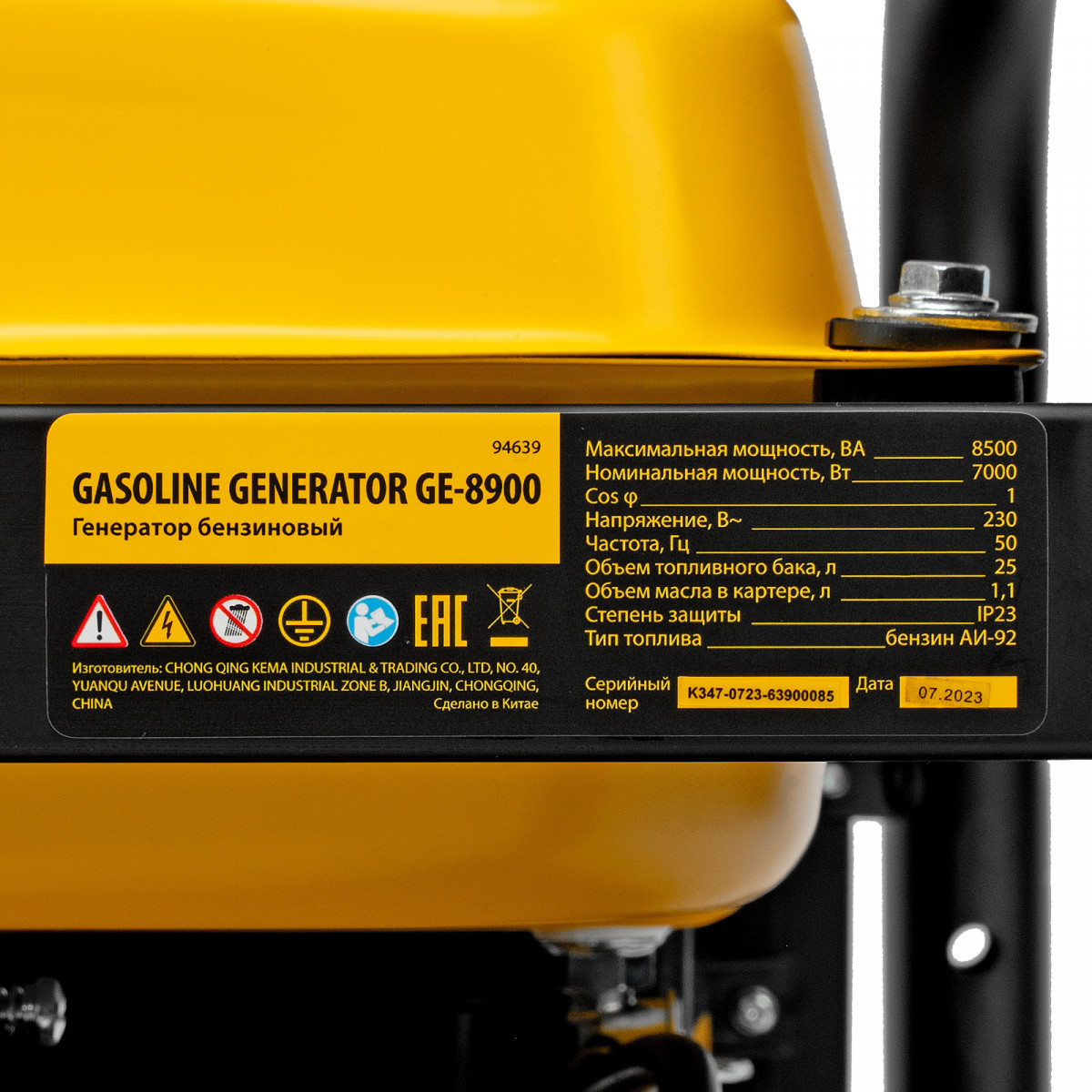 Генератор бензиновый GE 8900, 8.5 кВт, 220 В/50 Гц, 25 л, ручной старт Denzel