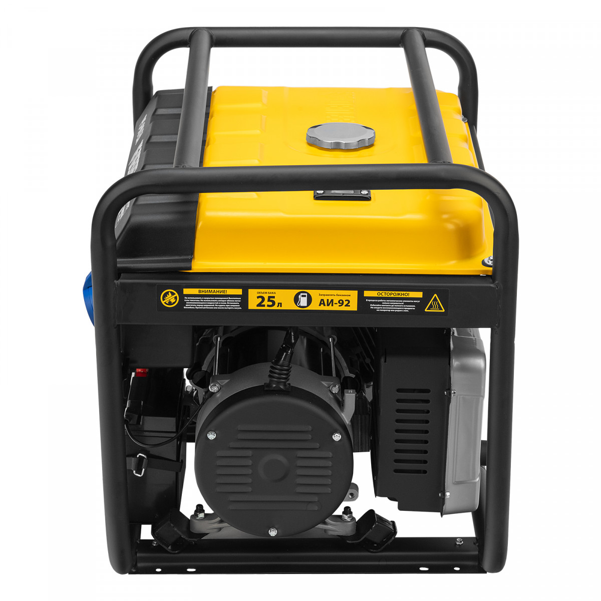 • Усиленная конструкция — рама из труб диаметром 32 мм с толщиной стенок 1,5 мм защищает генератор от повреждений.