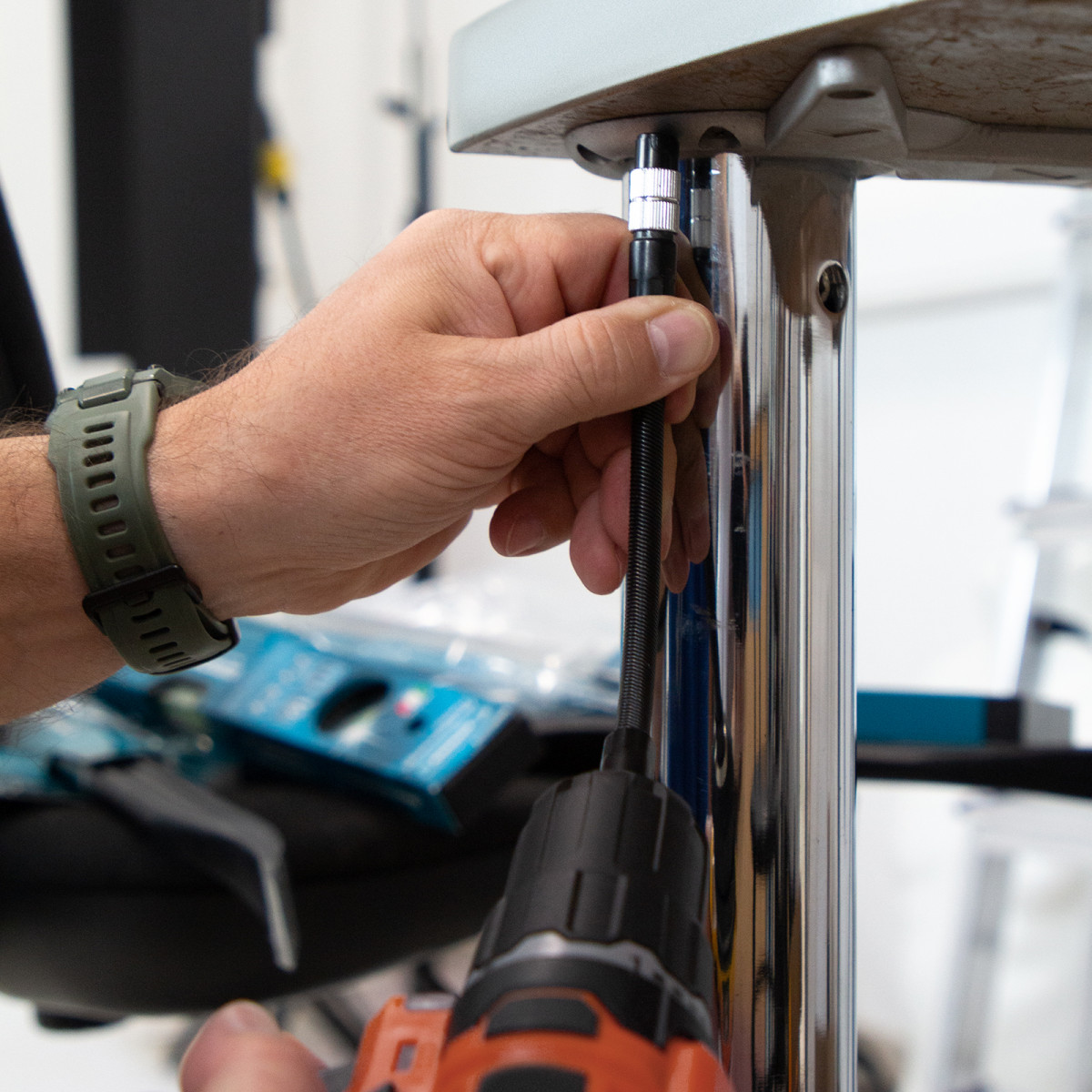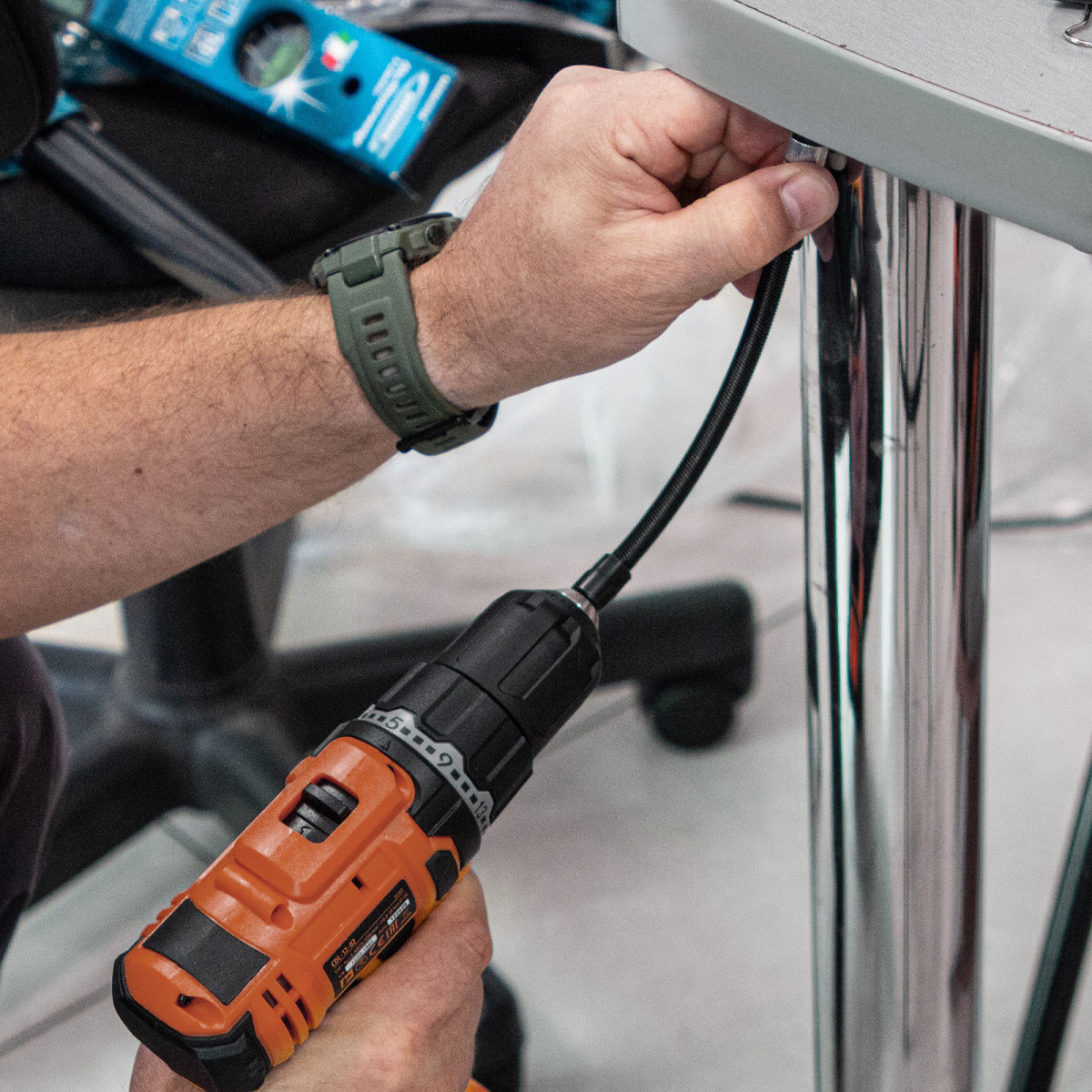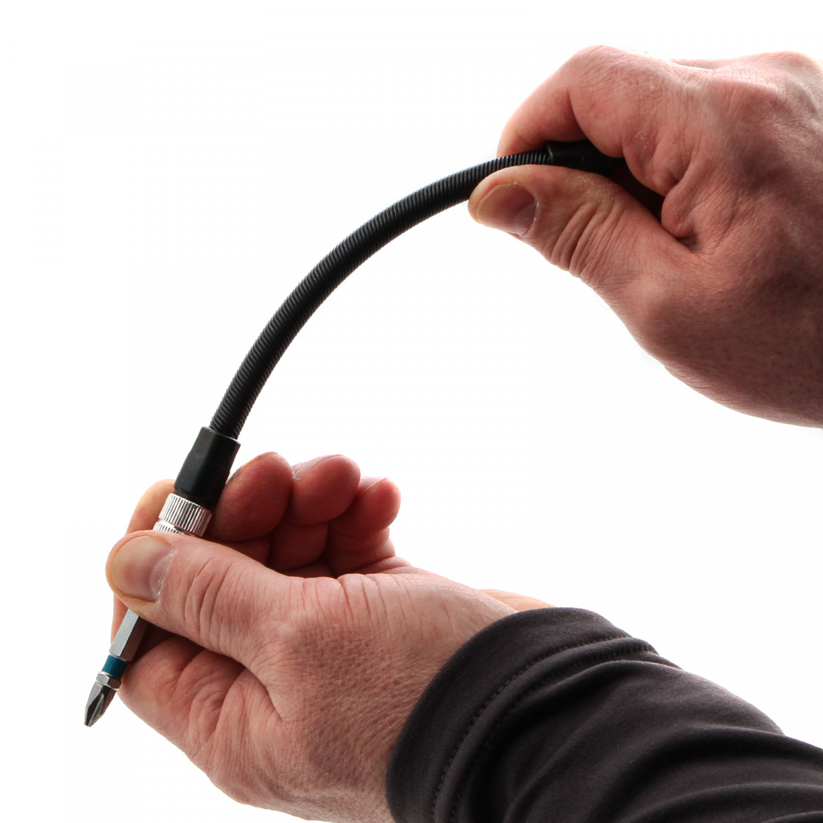 - Гибкий стержень — переходник позволяет получить доступ к участкам, расположенным под углом к оси вращения патрона шуруповерта.