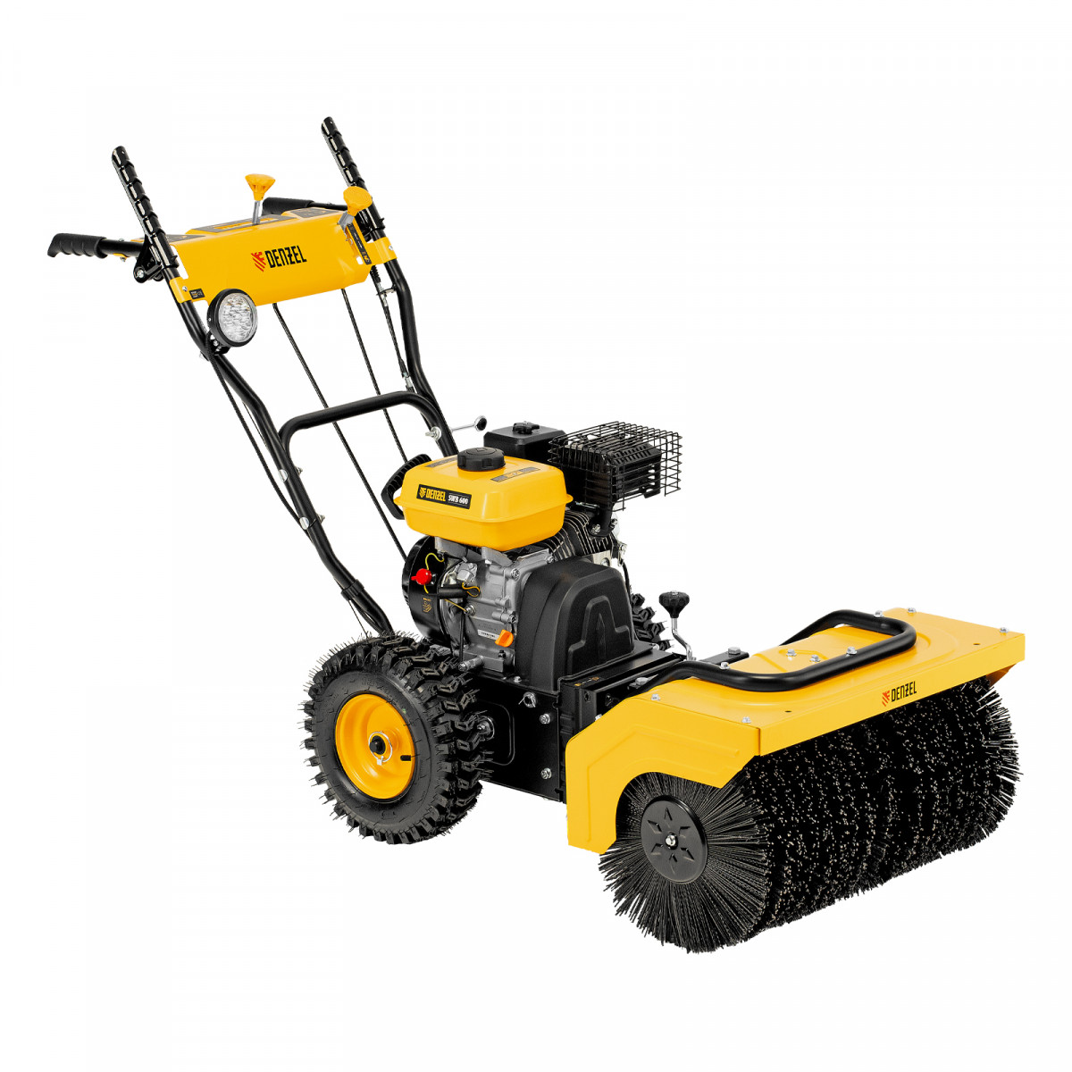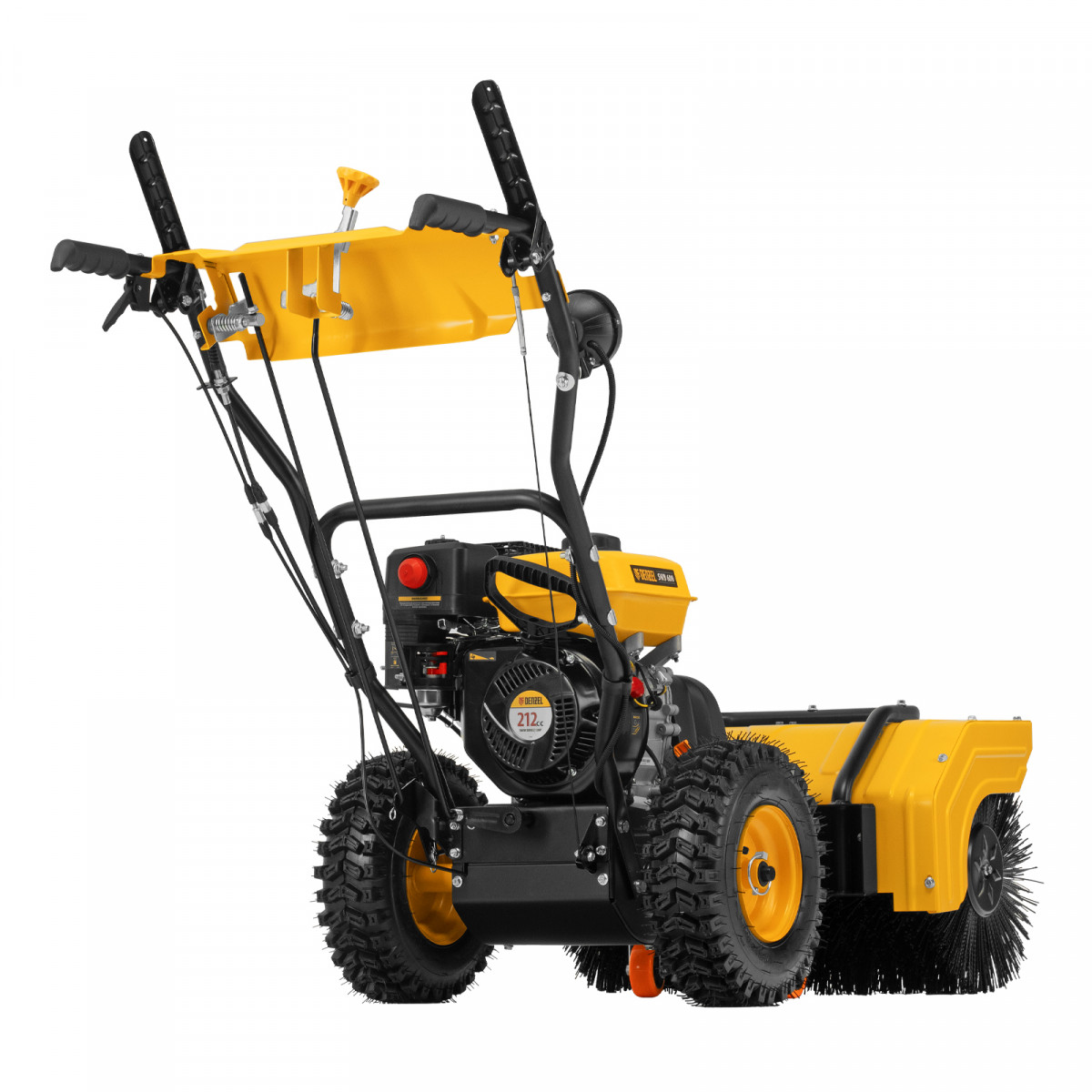 Гибридная снегоуборочная машина Denzel SWB-600 97661 с двигателем объемом 212 см3, ручным стартером и 2 насадками, предназначена для очистки территории от снега, а благодаря функции подметания справляется также с уборкой листвы, пыли и мусора. Ширина обработки щеткой составляет 700 мм (с учетом подрезателей Denzel 97102), ширина шнека — 560 мм при высоте захвата 430 мм, поэтому машина оптимальна для применения на дачном участке.
