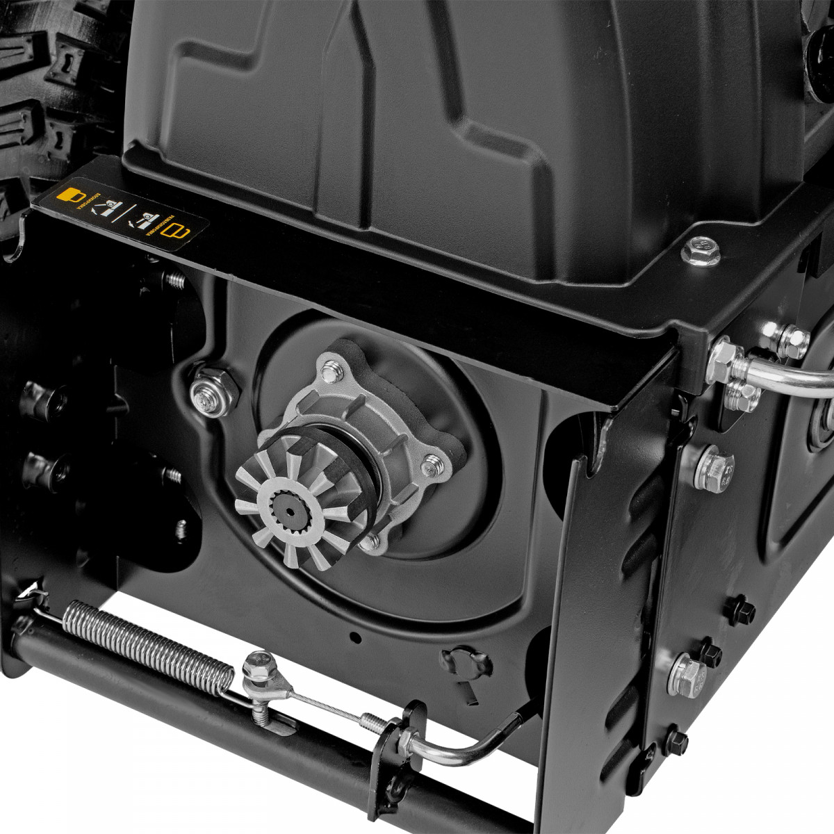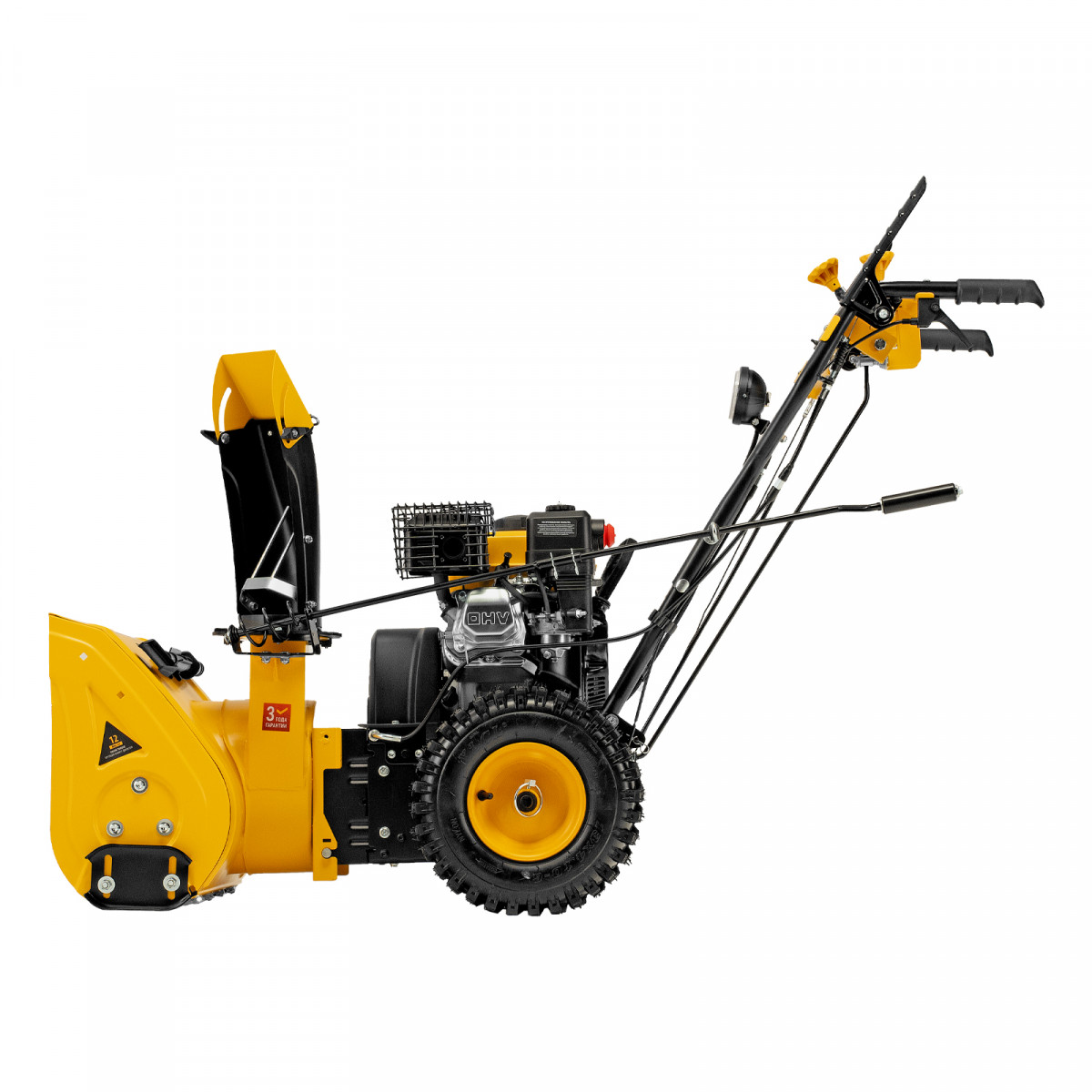- Выбор направления и дальности выброса снега — разгрузочный желоб поворачивается на 190° с помощью рукоятки.
