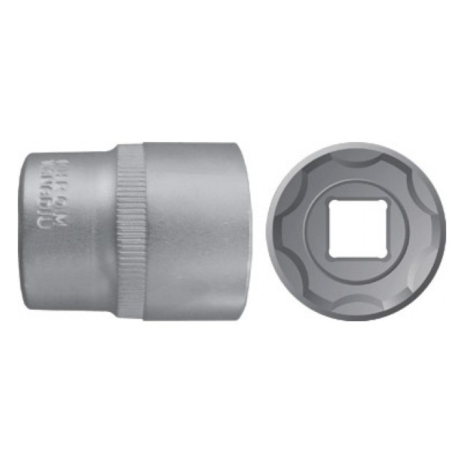 Для работы с крепежом с шестигранными головками. Размер присоединительного квадрата 1/2''. Внутренние грани головки имеют скругления большого радиуса, благодаря чему нагрузка прилагается не к углам граней крепежа, а к его боковой поверхности. Кроме этого, такая головка без труда надевается на крепеж с поврежденными гранями или заусенцами и отворачивает его. Наличие накатки обеспечивает надежный контакт с мокрыми или замасленными руками.