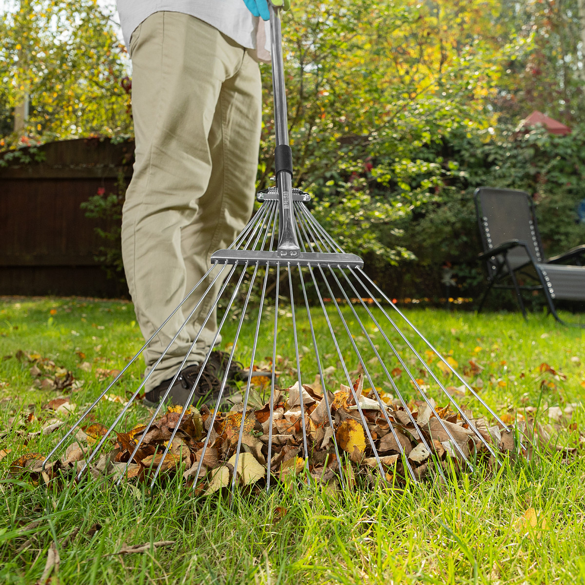 Веерные стальные грабли Palisad 6175655 размером 190-520 х 1200-1500 мм, раздвижные, с 15 зубьями и стальным черенком, пригодятся для работы на дачном участке. Используются для уборки веток, мусора, опавших плодов с газонов и грядок.