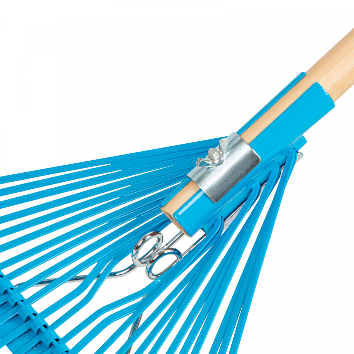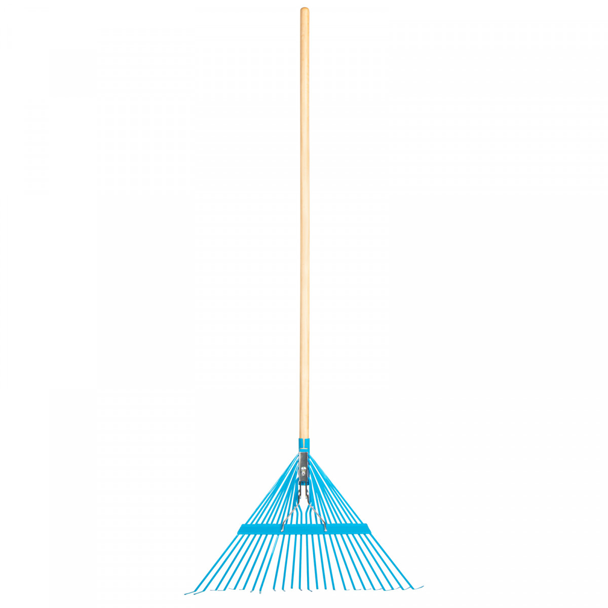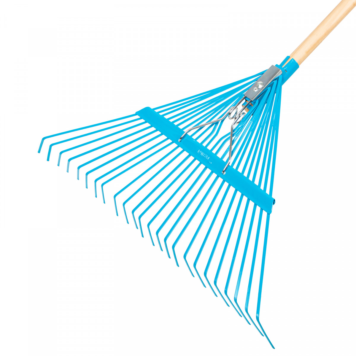 • Прочность и долговечность — грабли изготовлены из рессорно-пружинной стали и покрыты порошковой эмалью для защиты от коррозии.