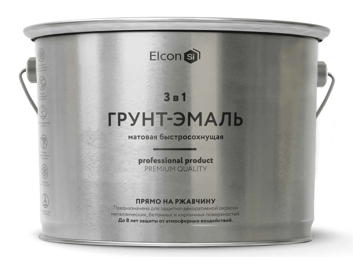 Грунт-эмаль 3 в 1 по ржавчине предназначена для нанесения как на чистые, так и на пораженные коррозией металлические поверхности с целью создания надежной антикоррозионной защиты металлоконструкций, оборудования, металлических изделий. Грунт-эмаль 3 в 1 Elcon сочетает в себе функциональные свойства преобразователя ржавчины, антикоррозионного грунта и декоративной эмали.Области применения: