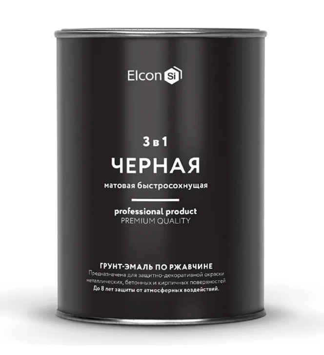 Грунт-эмаль по ржавчине 3в1 Элкон матовая черная RAL 9005 0,8кг