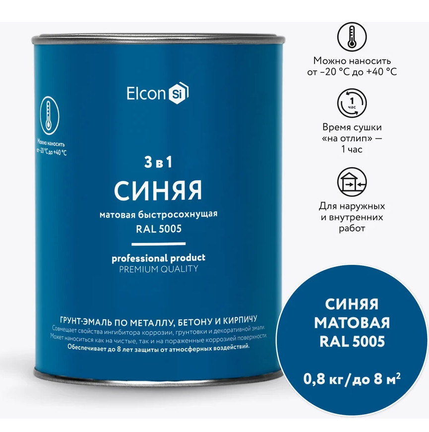 Грунт-эмаль по ржавчине 3в1 Элкон матовая синяя RAL 5005 0,8кг