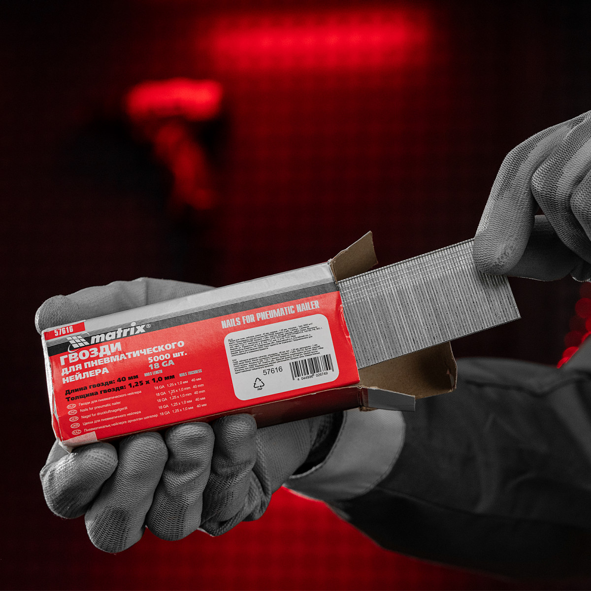 Гвозди для пневматического нейлера, длина 40 мм, ширина 1.25 мм, толщина 1 мм, 5000 шт Matrix