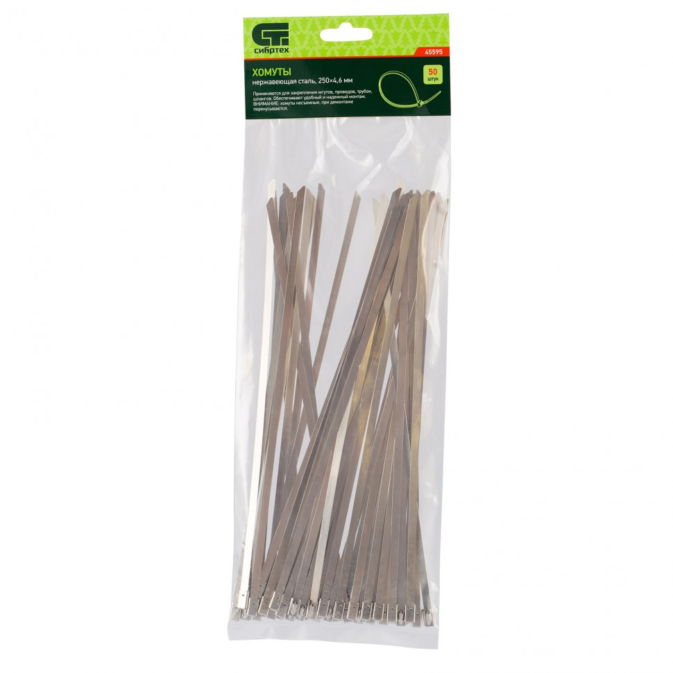 Хомуты, 250 х 4.6 мм, нержавеющая сталь, 50 шт Сибртех