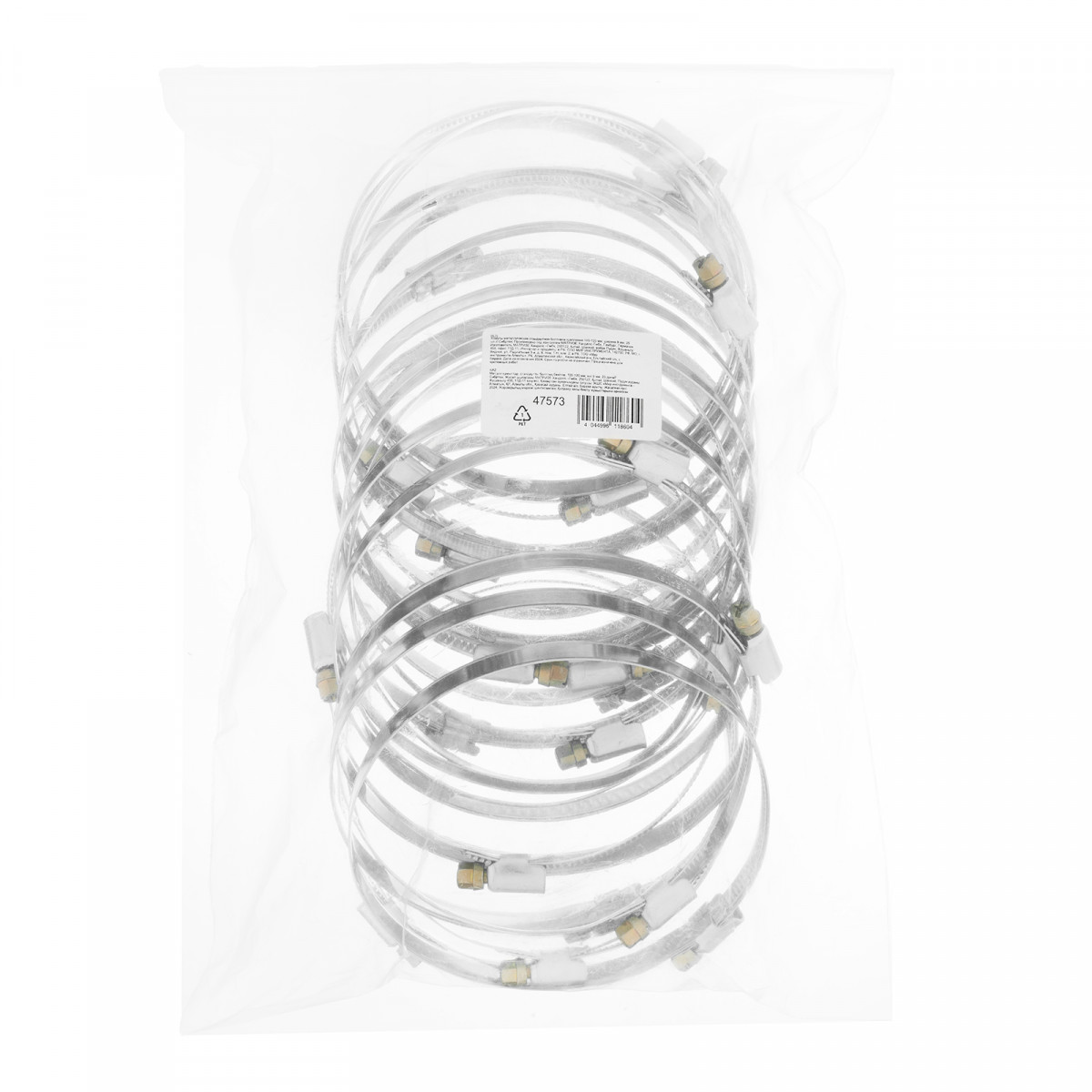 Металлические хомуты Сибртех 47573 со стандартным болтовым креплением, диаметром охвата 100-120 мм и шириной 9 мм, 25 шт. в упаковке, — крепежные элементы для соединения труб и шлангов. Обеспечивают плавную регулировку диаметра обжима, подходят для многократного использования. Строительные стяжки применяют для монтажа водопроводных, отопительных, вентиляционных систем.