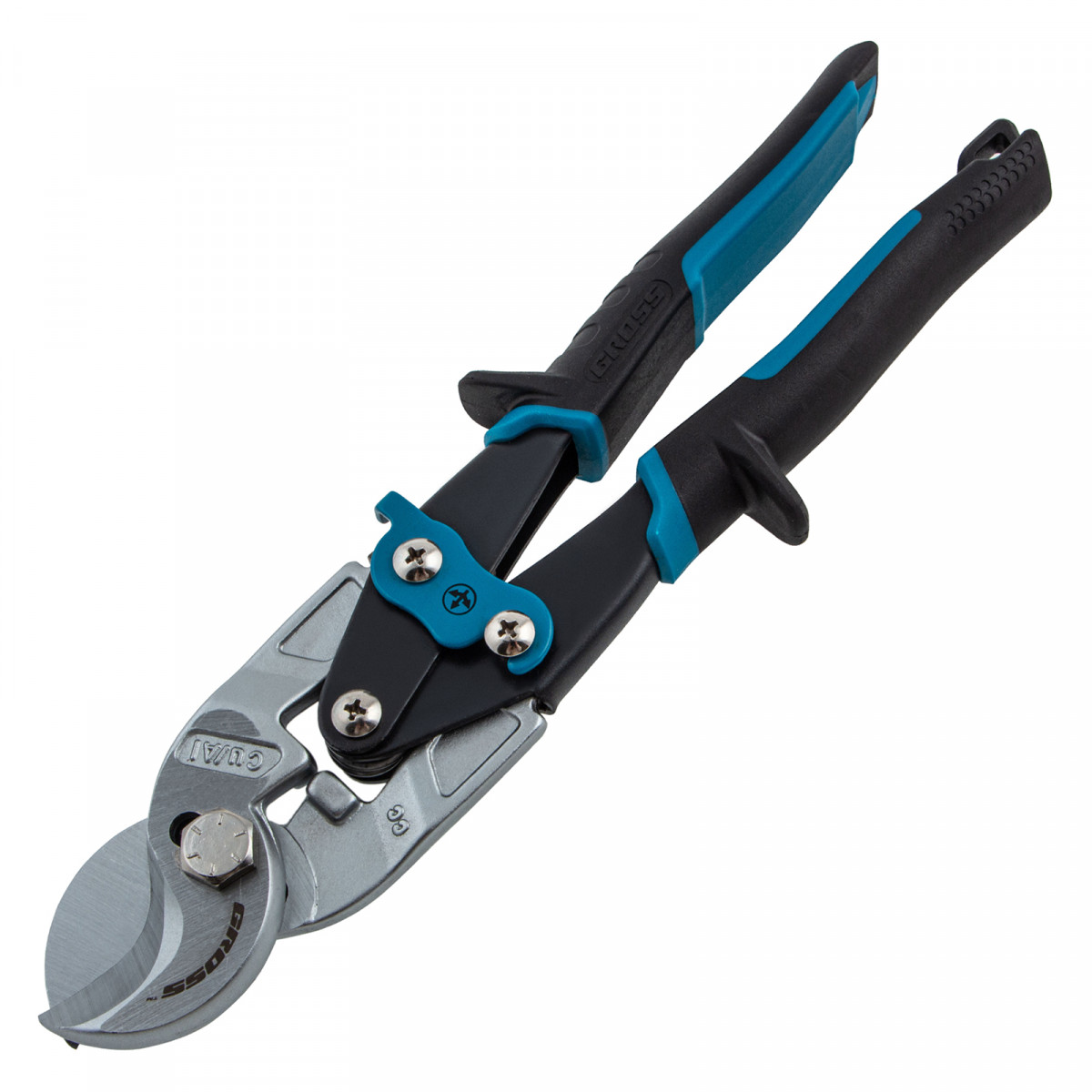 - Двойной рычажный механизм позволяет добиться высокой силы сжатия и сэкономить до 20% усилий при перерезании как алюминиевых, так и медных кабелей.
