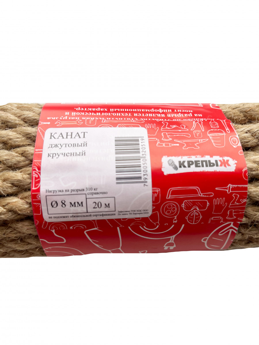 Канат джутовый кручёный 8 мм 20м КРЕПЫЖ