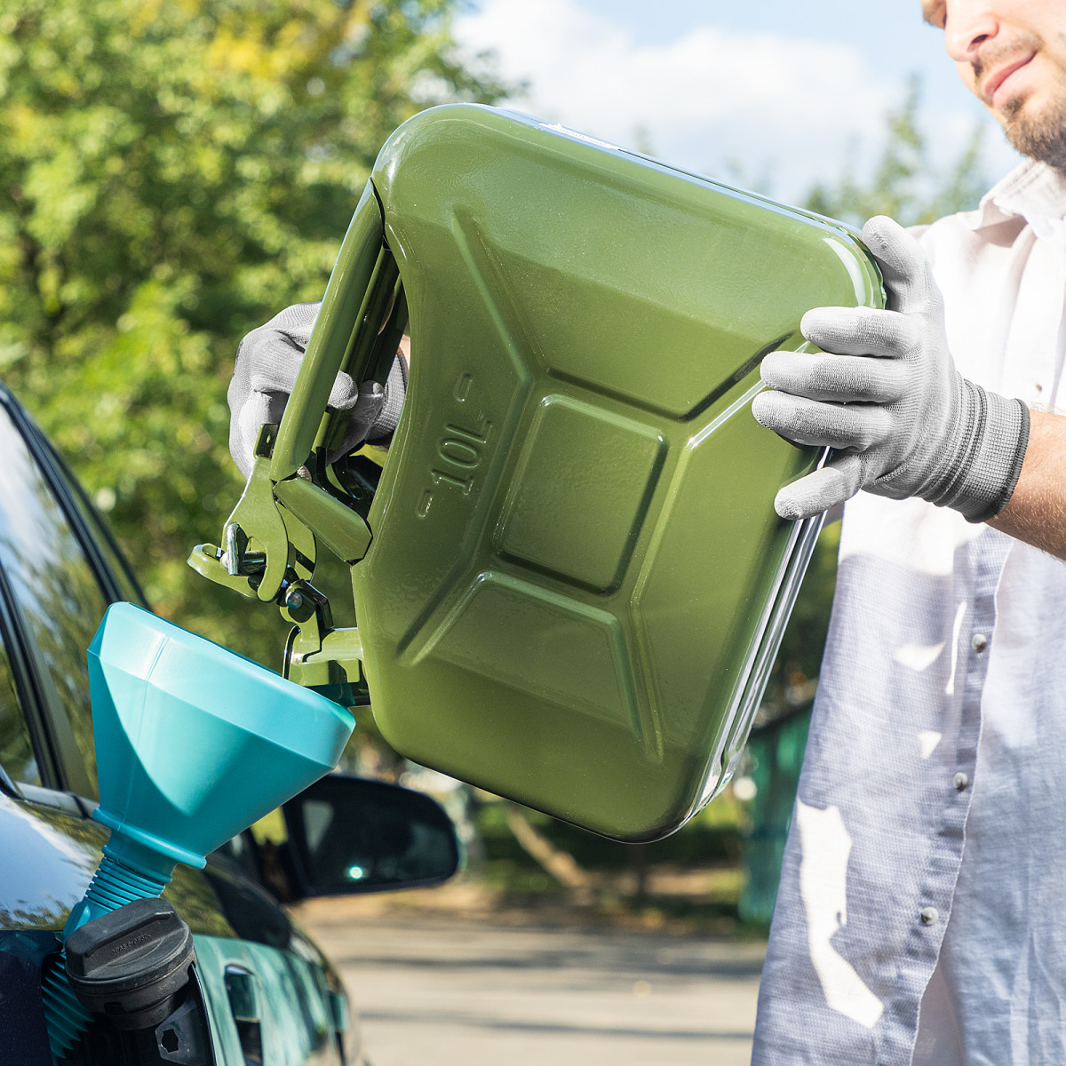 Металлическая канистра STELS 53144 объемом 10 литров предназначена для хранения и транспортировки бензина и других горюче-смазочных материалов (ГСМ). Ее можно разместить в багажнике автомобиля или поставить в гараже. Канистра пригодится для заправки авто и садовой бензотехники, разрешен залив топлива на АЗС.
