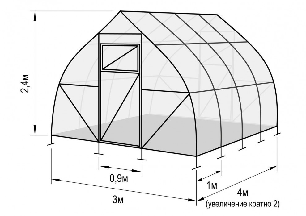 -Тип конструкции: каплевидная -Тип профиля: оцинкованная замкнутая труба 25х25 мм -Двери, форточки: 2 двери, 2 форточки в торцах теплицы -Крепление поликарбоната: стяжная лента по каждой дуге Тип установки: собирается на месте установки. -Удлинение теплицы: кратно 2-м метрам. Каркас выполнен из профильной оцинкованной квадратной трубы 25х25 с механическим замком (запатентованная продукция). Расстояние между дугами каркаса 1 м. Колличество поперечных стрингеров - 7. Торцы изготовлены из оцинкованного П-образного профиля. Комплектуется стяжными металлическими лентами, что облегчает процесс монтажа/демонтажа СПК. На обоих противоположных торцах дверной проём с дверью и форточкой. Ширина двери более 90 см. В виде укрывного материала можно использовать - ПОЛИКАРБОНАТ