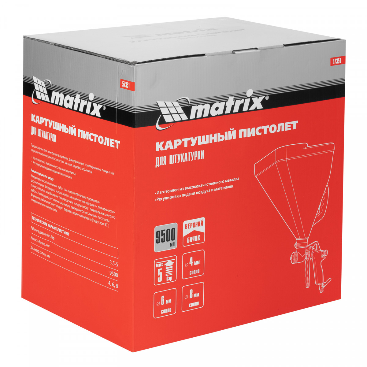 Картушный пистолет для штукатурки, V= 9,5 л, сопла 4, 6 и 8 мм Matrix
