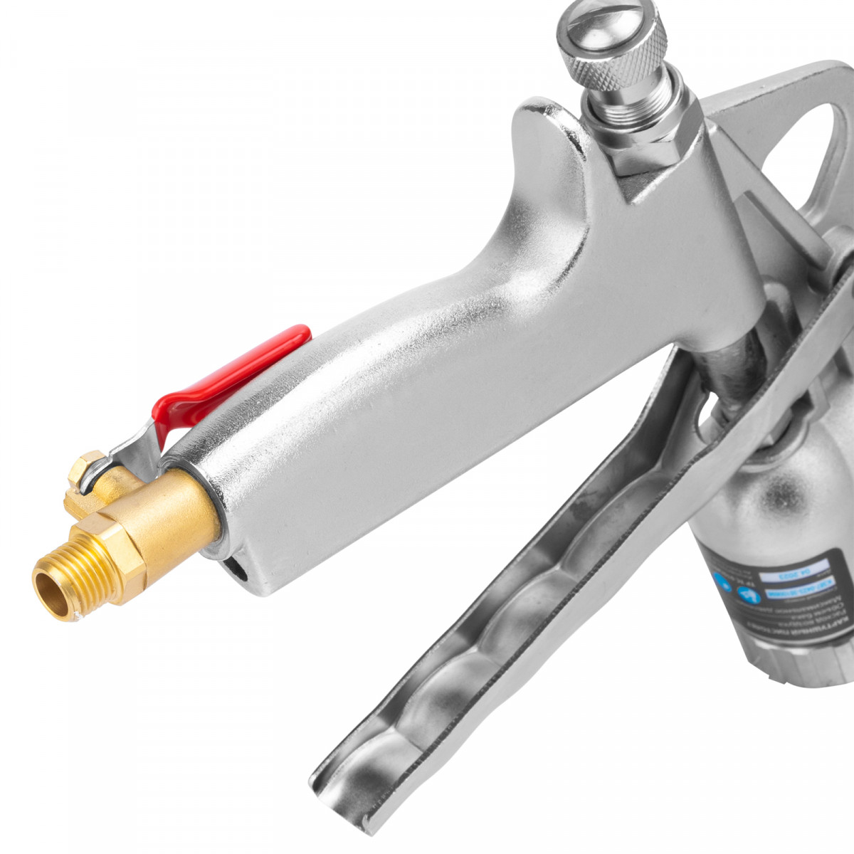 - Оптимальный размерный ряд сопел — пистолет подходит для нанесения составов различной вязкости и смесей, содержащих фракции разного размера.