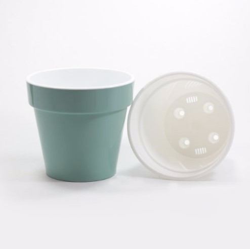 Горшок классической формы с дренажной вставкой. Наличие дренажной вставки упрощает уход за растением, а также защищает растение от избытка воды и обеспечивает вентиляцию корней. Диаметр: 14,5 см. Высота: 13 см.