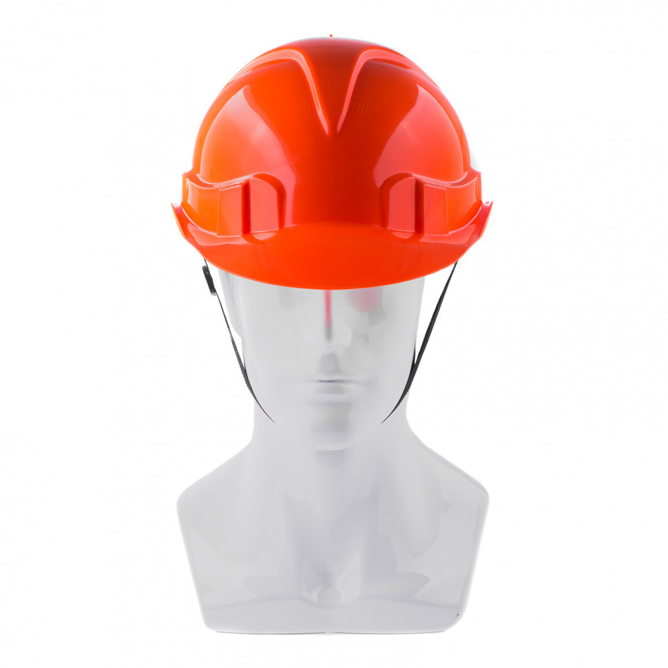 Оранжевая каска с храповым механизмом Сибртех 89108, модель Европласт (К-03), предназначена для защиты головы от механических повреждений и влаги. Каска необходима на производстве, стройке и в других местах, где требуется обеспечить безопасность работника. Наголовное крепление с храповым механизмом позволяет плавно и точно регулировать размер оголовья с 52 по 62, надежно фиксируя каску на голове.